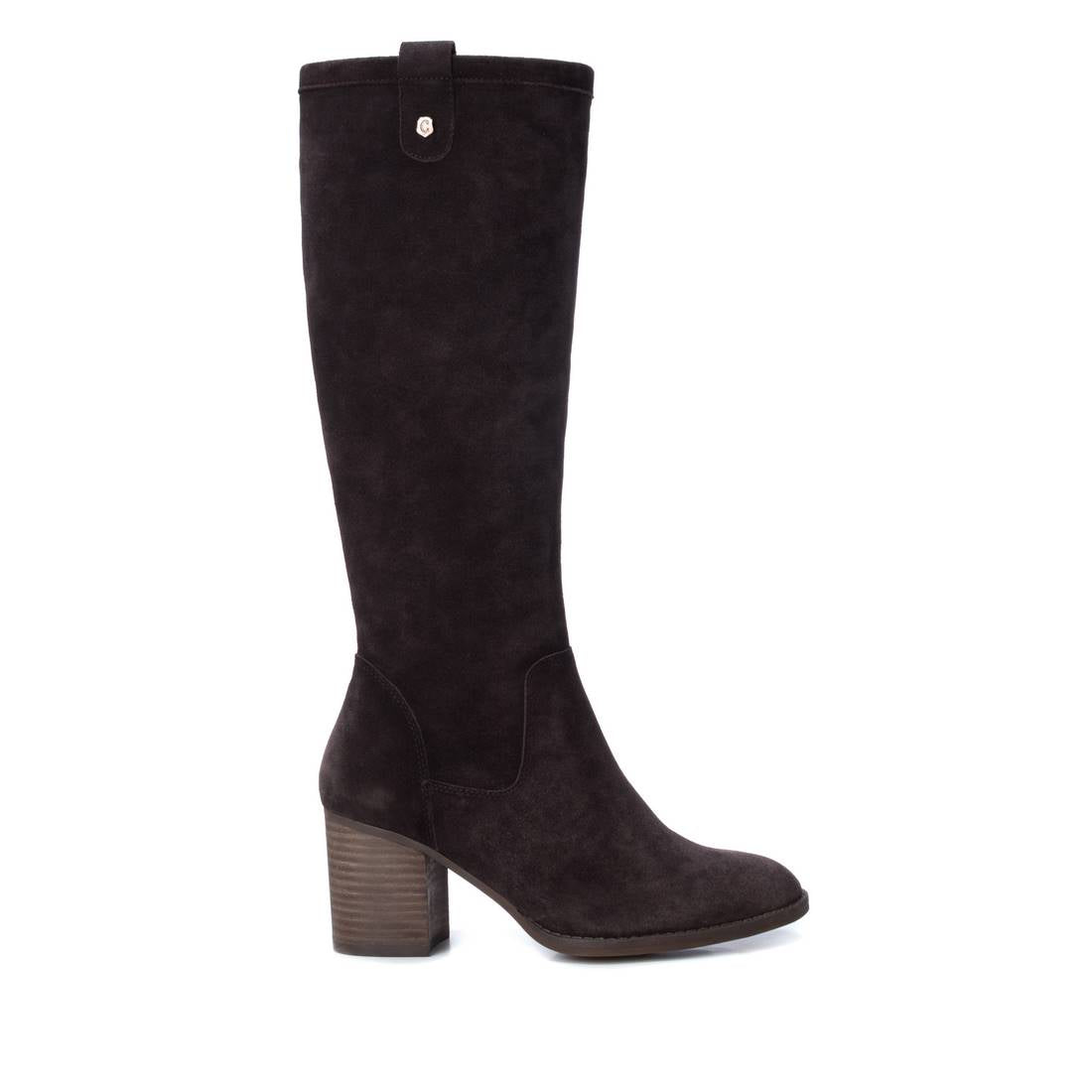 Women's high boot made of suede leather with side zipper. Boot with 7 cm wide heel. Rubber sole. A boot with a lot of style and great comfort. Ideal to combine with pants or skirts.