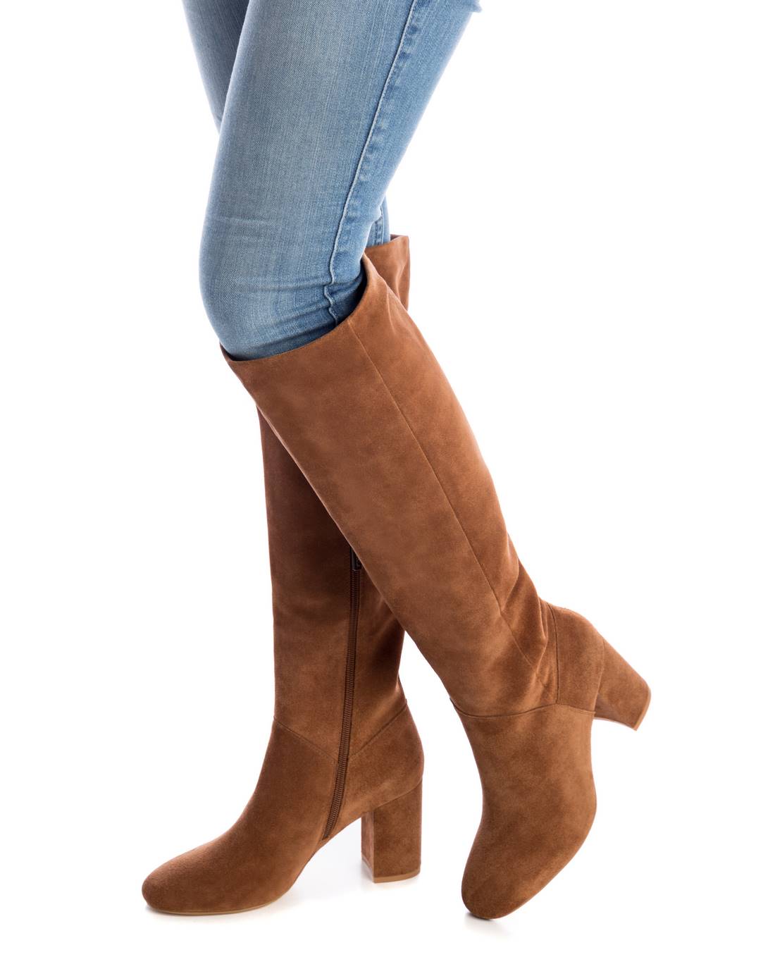 Women's high boot, Carmela brand. Made of suede with leather insole. Zipper closure. Non-slip rubber sole. 8 cm heel.