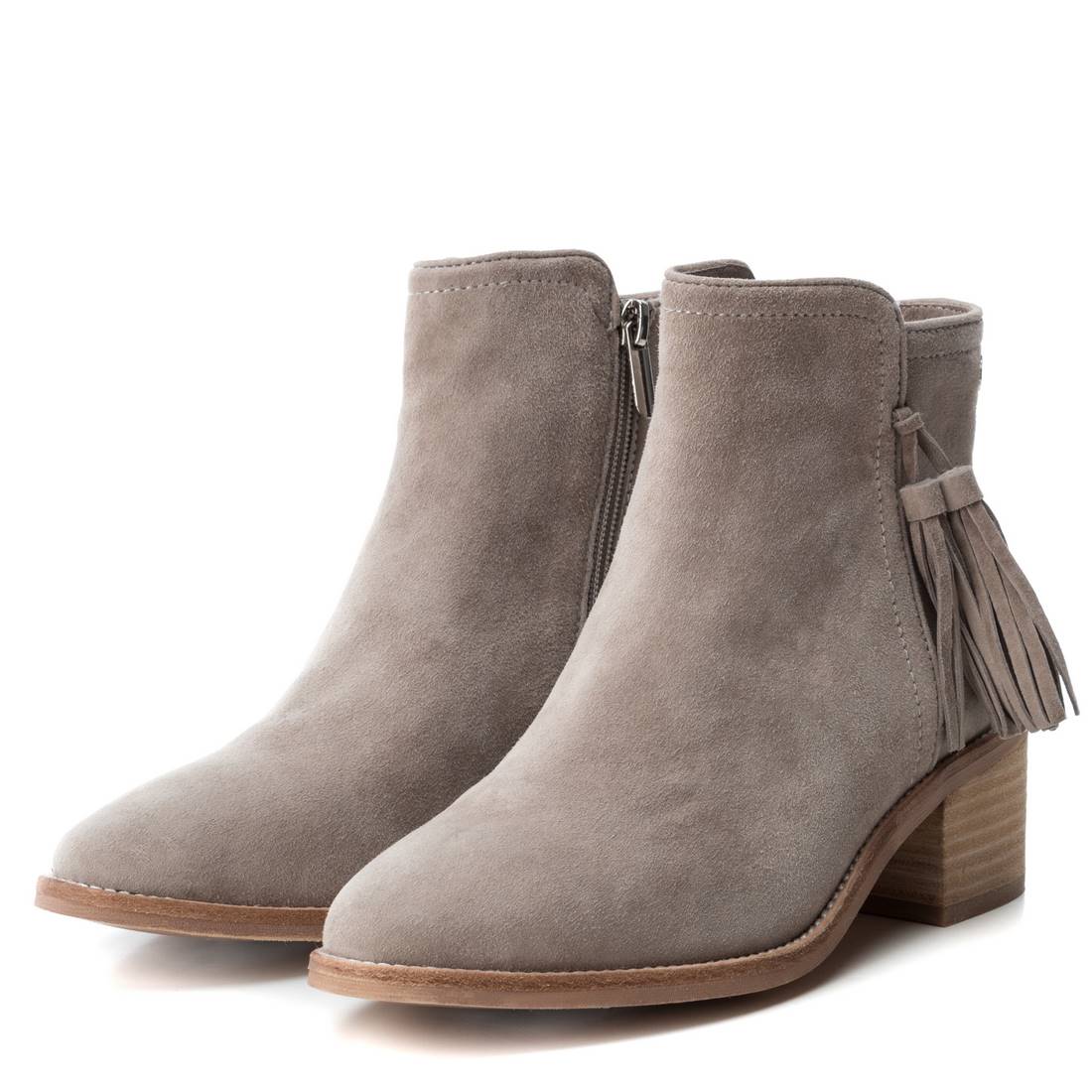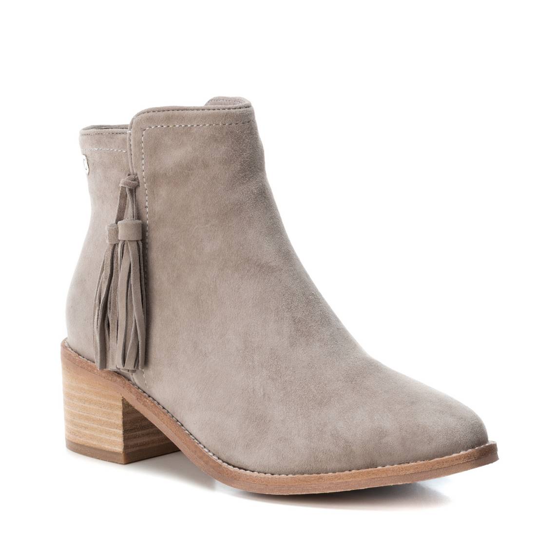 Women's ankle boot with a 6cm square heel from Carmela. Leather ankle boot with a decorative pompom. Side zipper for easy on and off.