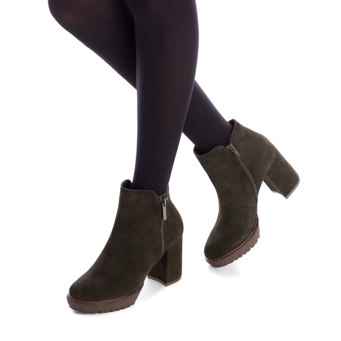 Women's ankle boot with a 9 cm heel made of suede leather from the Carmela brand. The boot features a side zipper. It features a leather insole and a non-slip rubber sole. A very comfortable boot that goes well with any style.