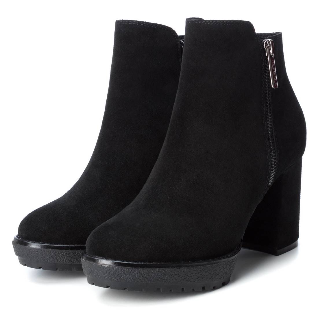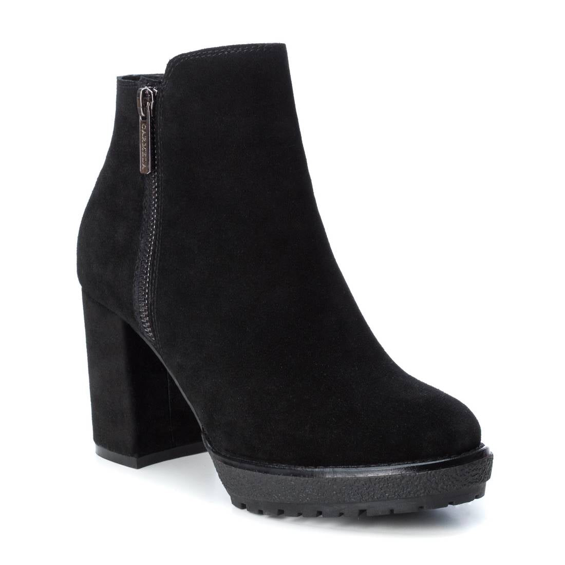Women's ankle boot with a 9 cm heel made of suede leather from the Carmela brand. The boot features a side zipper. It features a leather insole and a non-slip rubber sole. A very comfortable boot that goes well with any style.