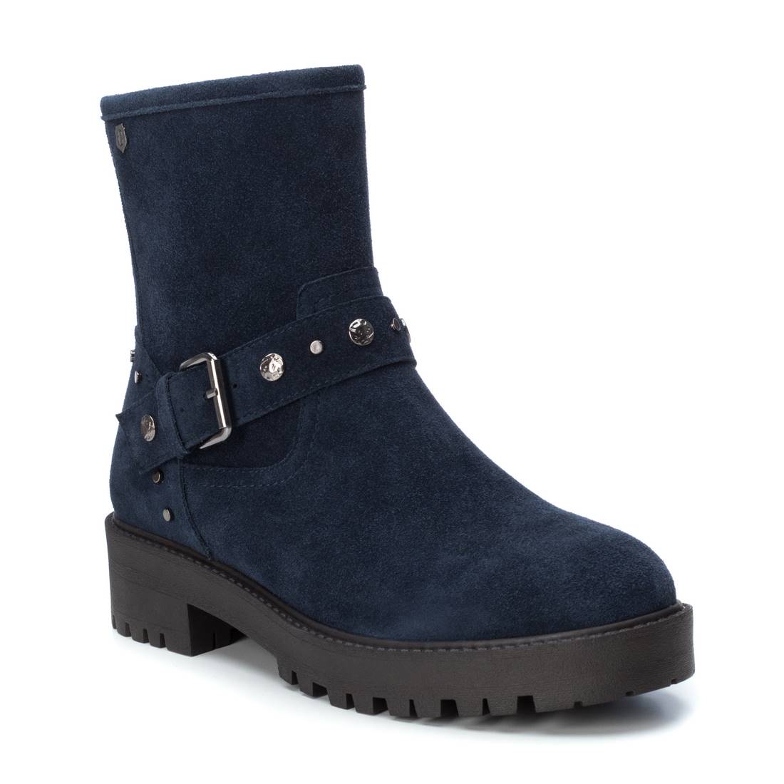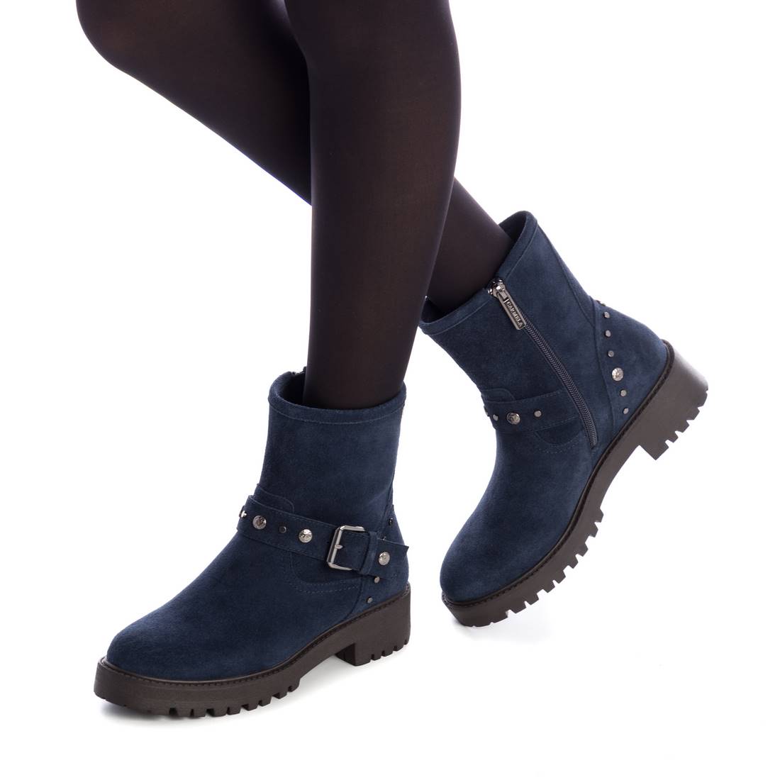 Women's ankle boot with a 4 cm heel and rubber sole. Made of Carmela suede leather. The boot features a buckle on the side. Decorative studs on the top strap and back. A basic ankle boot that you can wear every day thanks to its high quality and comfort.