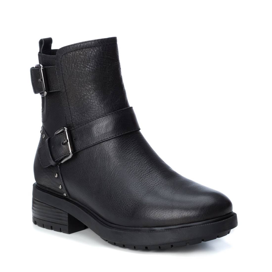 Women's flat ankle boot from the Carmela brand. Basic leather ankle boot with a 4 cm square heel and a comfortable rubber sole. A stylish basic that you can wear every day. Buckles on the upper instep and at the back. Side zipper closure.