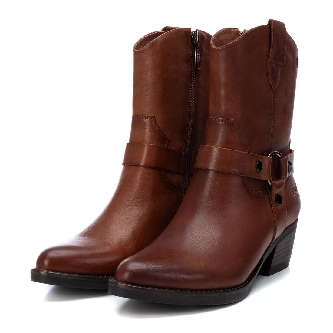 Women's cowboy-style ankle boots with a 5 cm heel from the Carmela brand. Made of high-quality leather. Textile interior, leather insole, and non-slip rubber sole for greater comfort. Its pointed toe and ankle strap detail add style. Carmela brand.