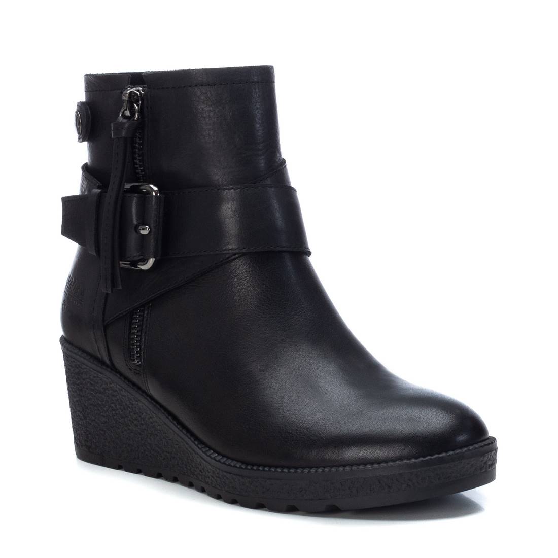 Women's Chelsea-style ankle boot with a 6 cm wedge heel from Carmela. Made of high-quality leather, both the upper and the insole. Textured, non-slip rubber sole for added comfort. Zip closure. Crisscross strap with buckle on the instep. Carmela brand.