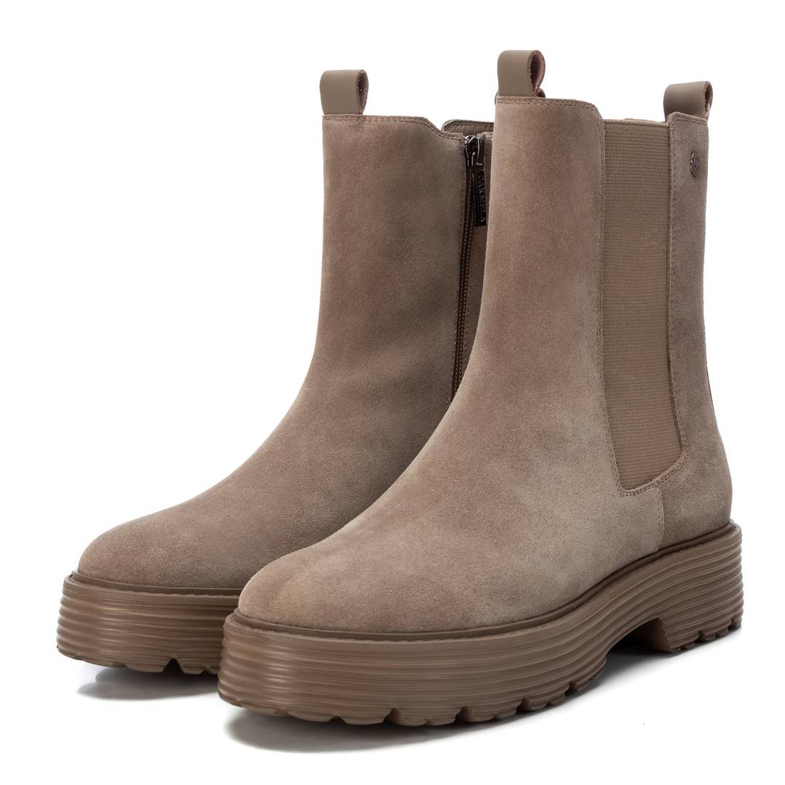 Women's casual Chelsea-style ankle boot from Carmela. Made of suede with elastic textile bands on the sides. Pull tabs for easy on and off. Non-slip comma sole.