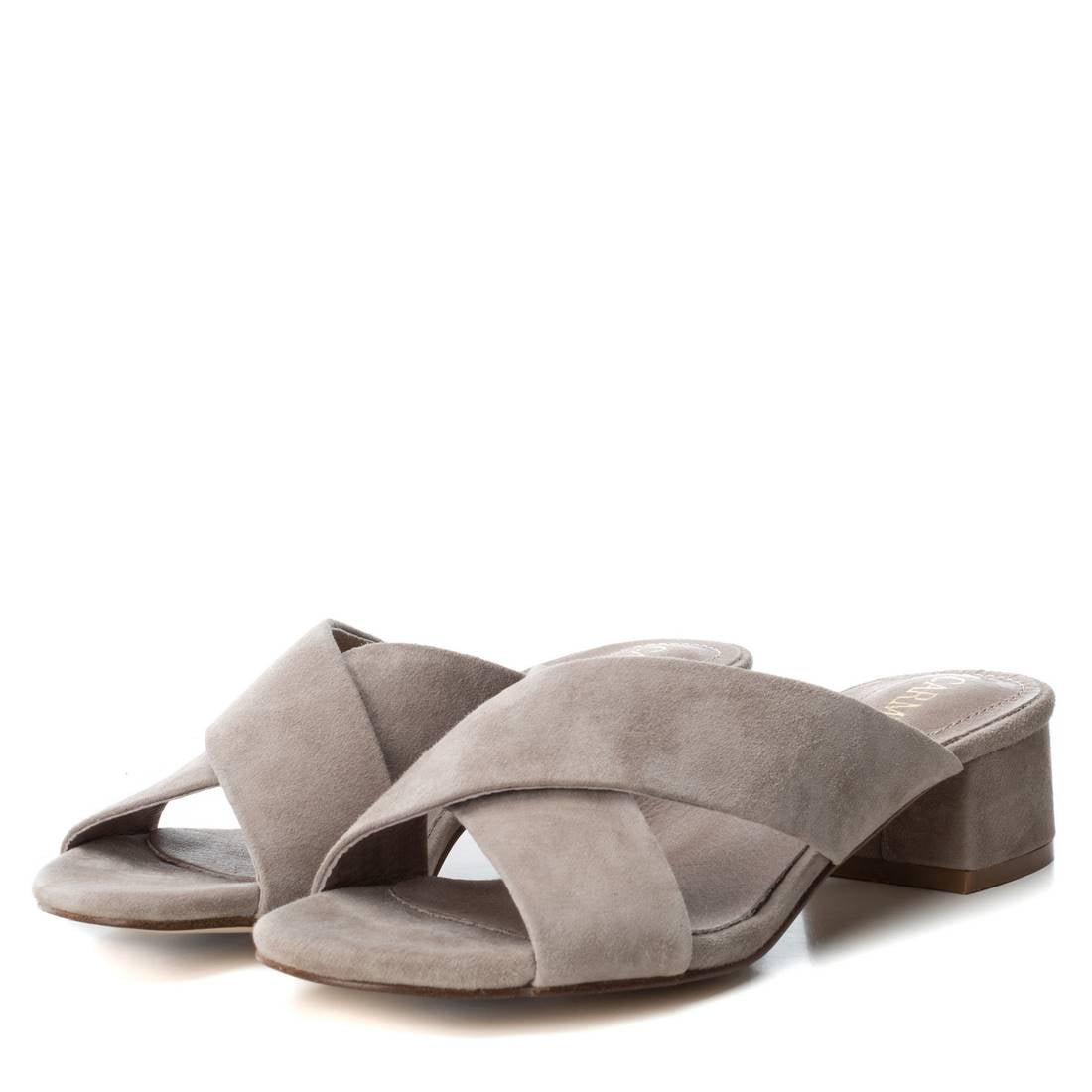 Women's sandal with crossed straps on the instep. Leather sandal, both the cut and the insole. 4 cm lined square heel. Rubber sole. A very comfortable and elegant sandal to wear every day.