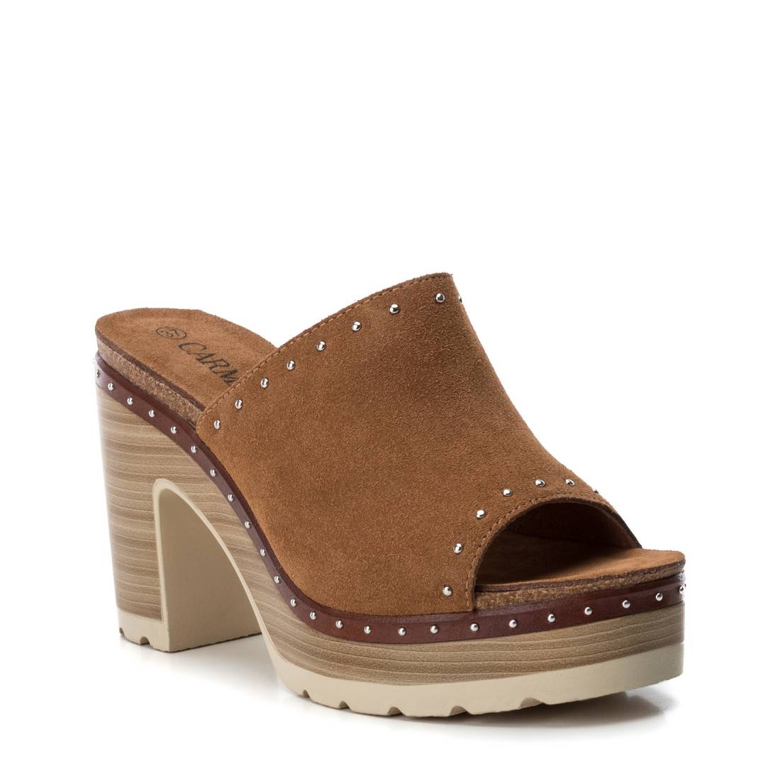 Women's clog-type sandal with 10 cm heel and 3 cm platform. A clog made of high quality leather from the Carmela brand. Ideal to combine with jeans. Rubber sole that provides great comfort when walking.