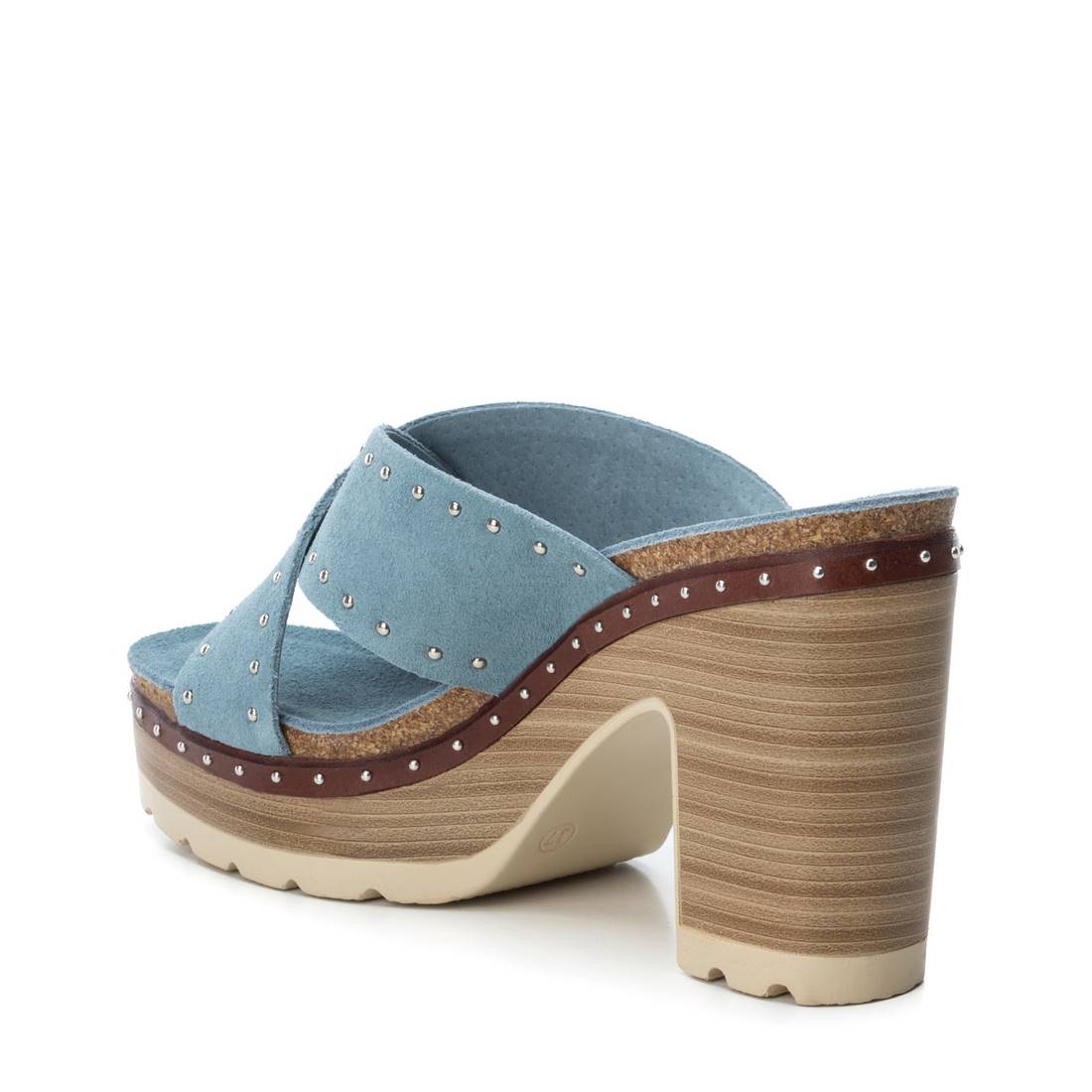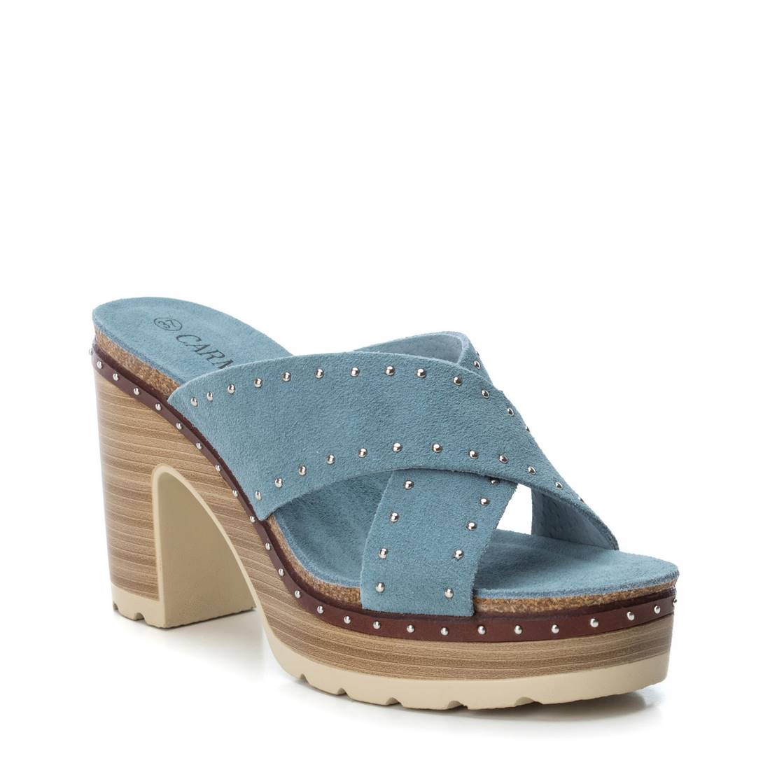 Women's sandal with 10 cm heel and 3 cm platform. Made of leather, both the cut and the insole. Decorative studs on the crossed straps of the instep and on the top of the sole. An ideal sandal for this spring.