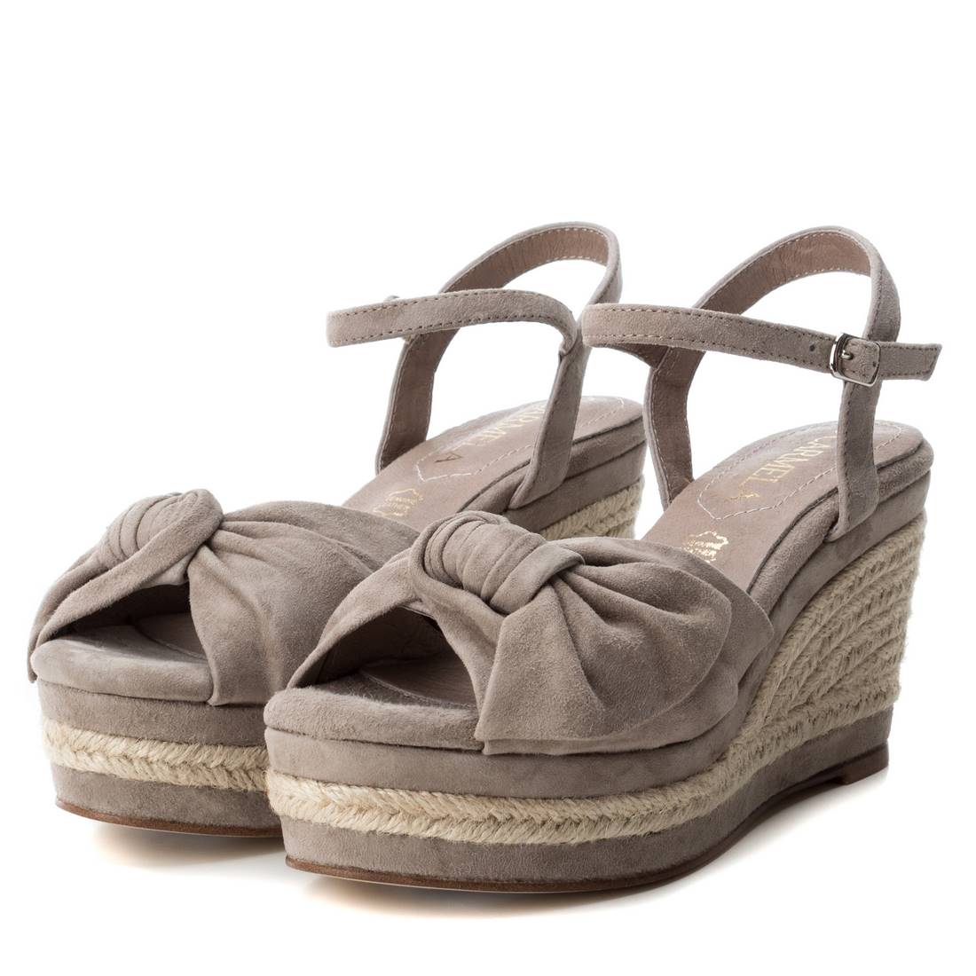 Leather sandal with 9 cm wedge from the Carmela brand. Leather insole and 3 cm platform for comfortable use. Buckle closure.