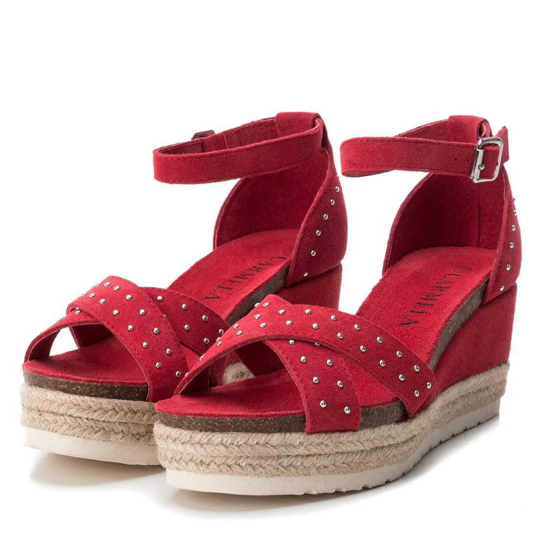 Sandal with 9 cm wedge and 3 cm platform. Crossed straps on the instep with decorative metal studs. Ankle buckle bracelet. Wedge combined with leather, jute and rubber. A very stylish sandal.