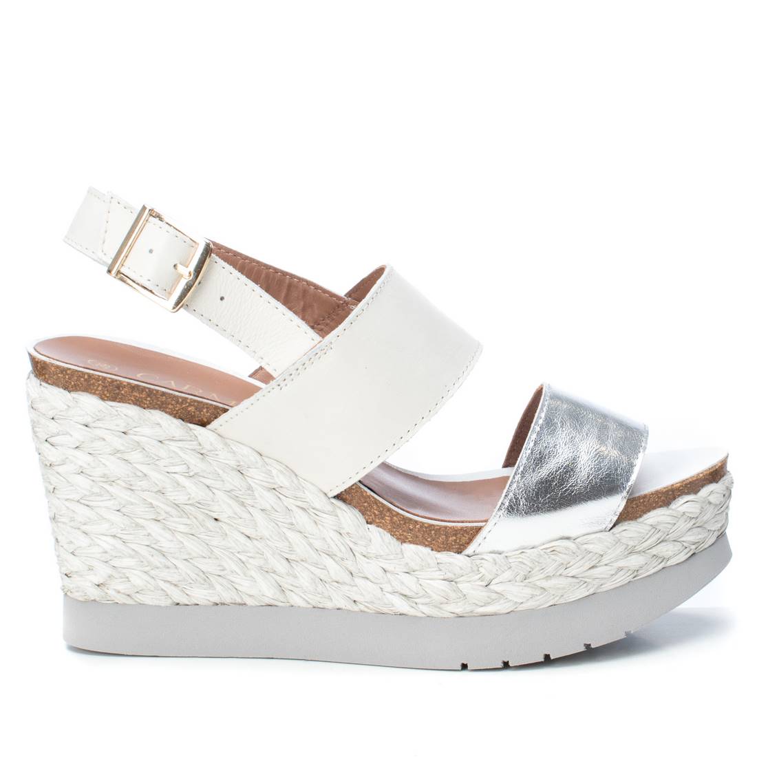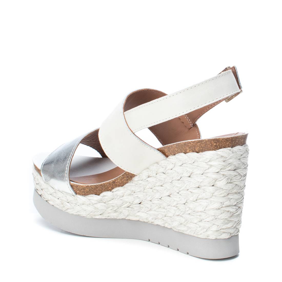 Sandal with 10 cm wedge and 4 cm front platform. Straps on the instep to match the sandal, one of them metallic for a more chic look. Adjustable buckle closure at ankle height. Braided wedge design that gives an original touch to this model.