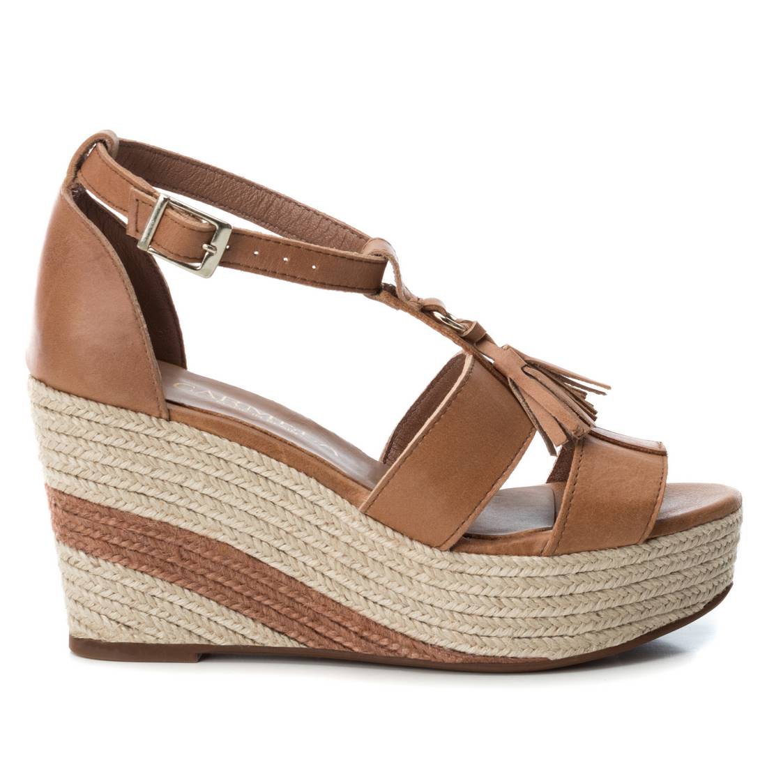 Women's sandal with 9 cm wedge and 3 cm platform. Sandal made of high quality leather. Leather insole with the Carmela logo on the sole. Combined wedge in two colors of braided jute. Rubber sole.