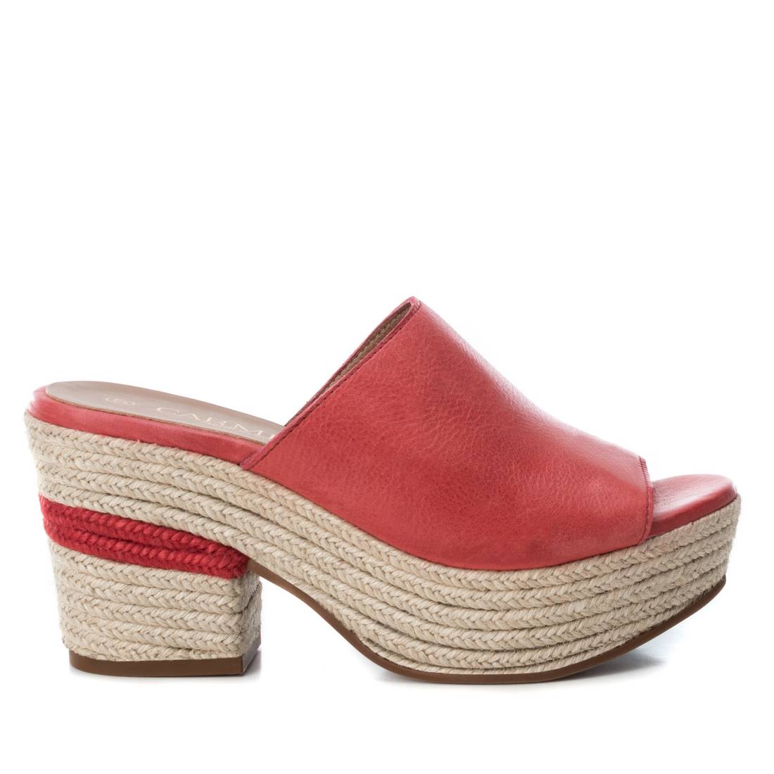 Women's sandal with 9 cm wide heel and 3 cm front platform. Sandal made of clog-type leather with leather insole and rubber sole. A style that returns every season and that you can combine with any look.