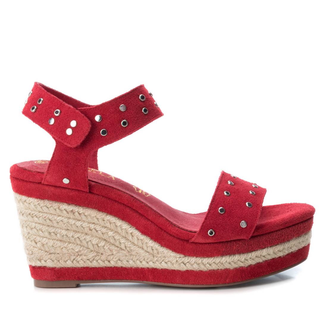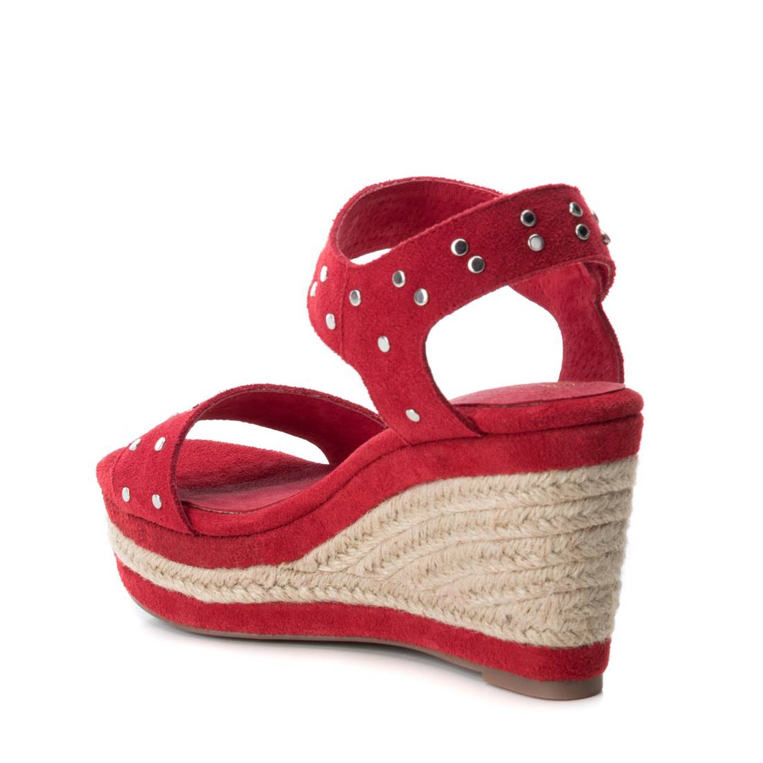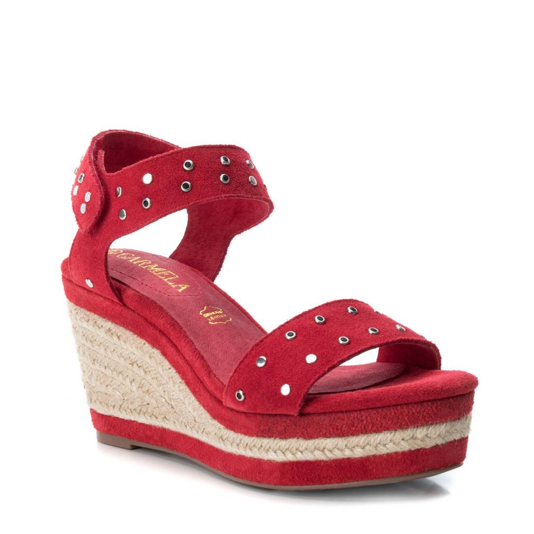 Women's sandal with 10 cm wedge and 3 cm front platform. Combined leather and braided jute wedge. Carmela brand sandal made of high quality leather. Decorative metal studs on the two straps of the instep. Velcro closure. Rubber sole.
