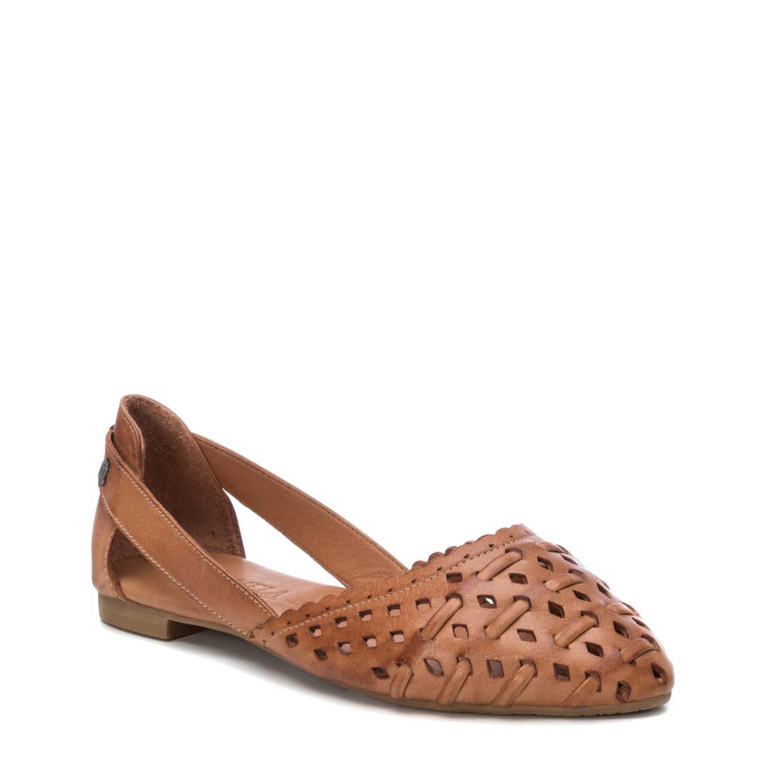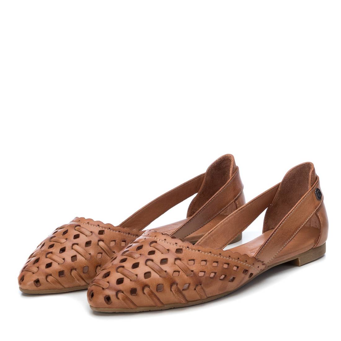 Ballerina-type women's shoe with open sides from the Carmela brand. Leather shoe with die-cuts, leather insole and rubber sole. A very stylish shoe, very combinable with any look.