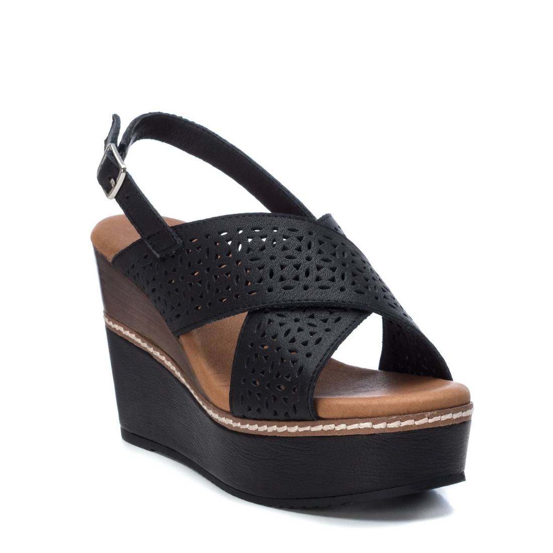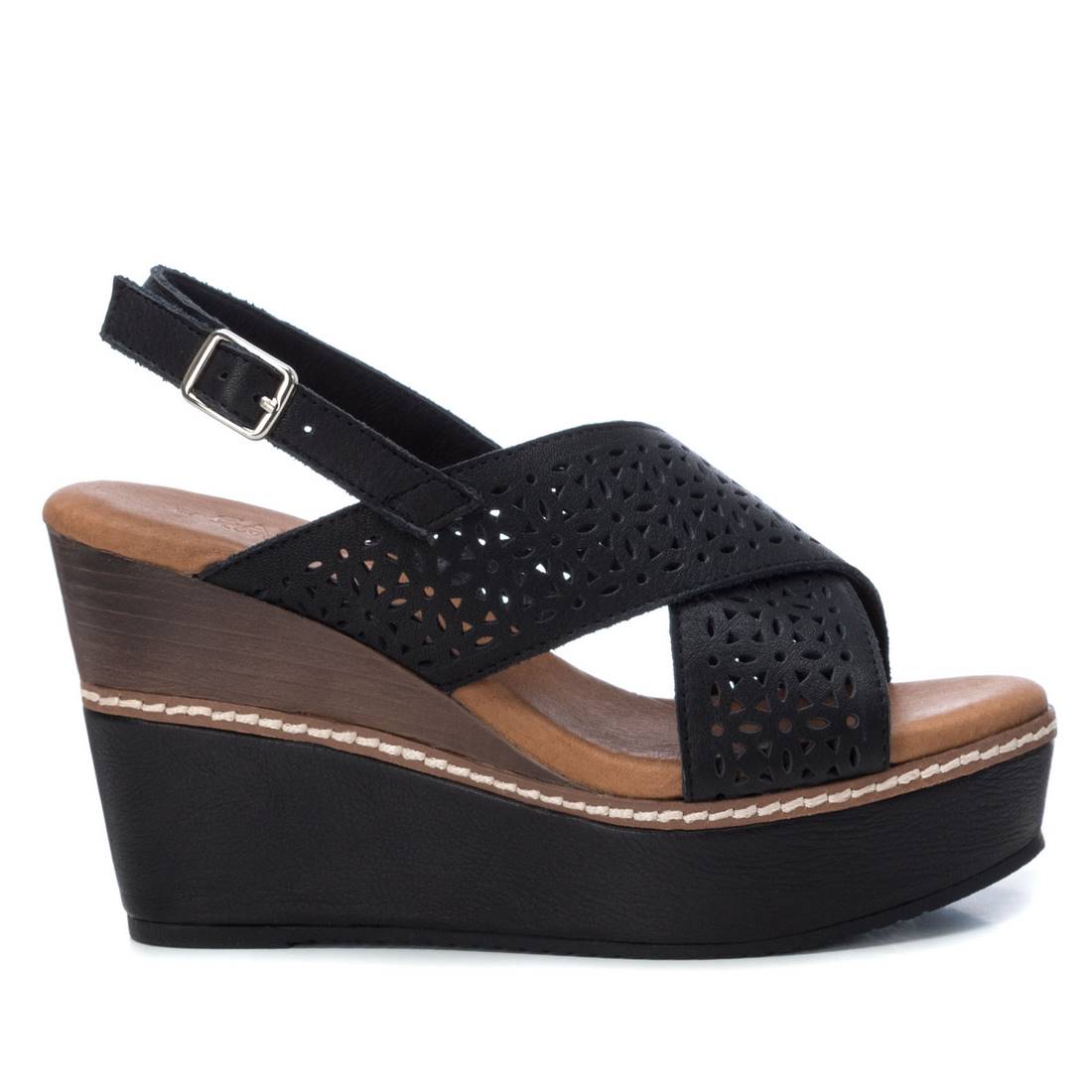Women's sandal with a 10 cm wedge and 3 cm front platform from the Carmela brand. Sandal with two crossed straps on the instep. Side buckle closure. Leather insole and rubber sole.