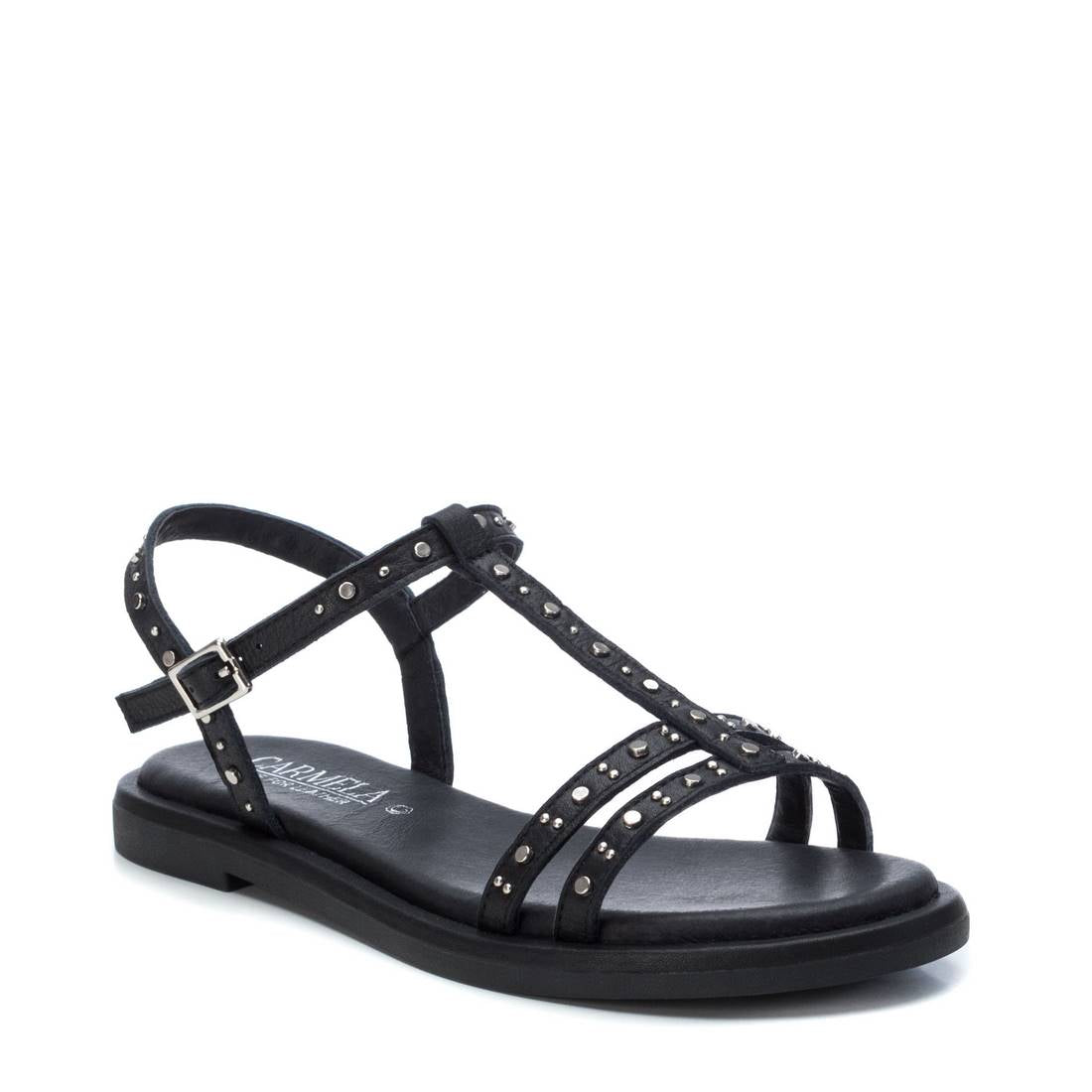 Women's flat sandal from the Carmela brand. Sandal made of high quality leather with decorative metal studs. Adjustable buckle closure. Rubber sole and leather insole. An ideal sandal to combine with your most summery dresses.