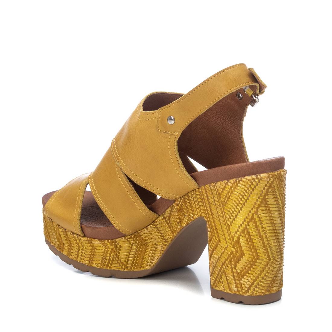 Women's sandal with a 10 cm high heel with ethnic details. Made of leather with side openings. Side buckle closure. Sandal combinable with any type of garment. It will become your summer favorite.