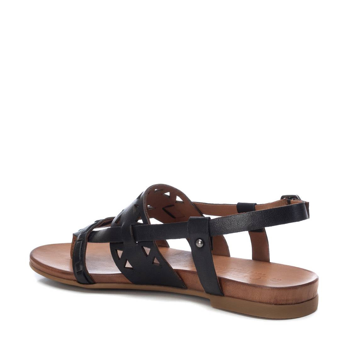 Women's flat sandal from the Carmela brand. High-quality leather straps with die-cutting and ankle grip. Side buckle closure. Leather insole and non-slip rubber sole. Comfortable sandal perfect to combine with any type of garment.