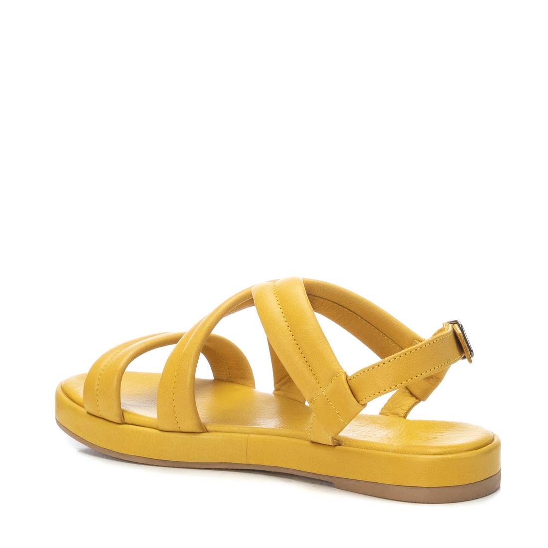 Women's flat sandal from the Carmela brand. Insole made of high quality leather and with side buckle closure. Front strap and two crossed straps in the center of the sandal. Basic sandal that can be combined with any look.
