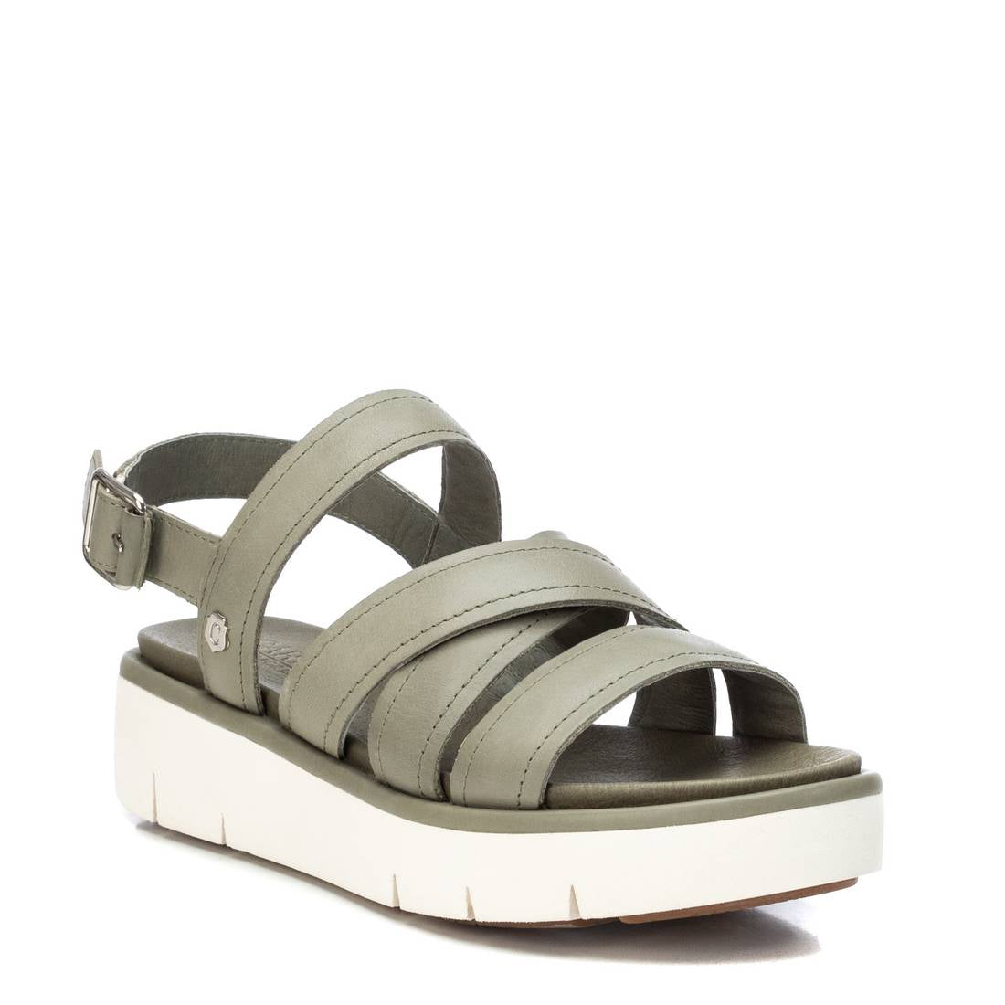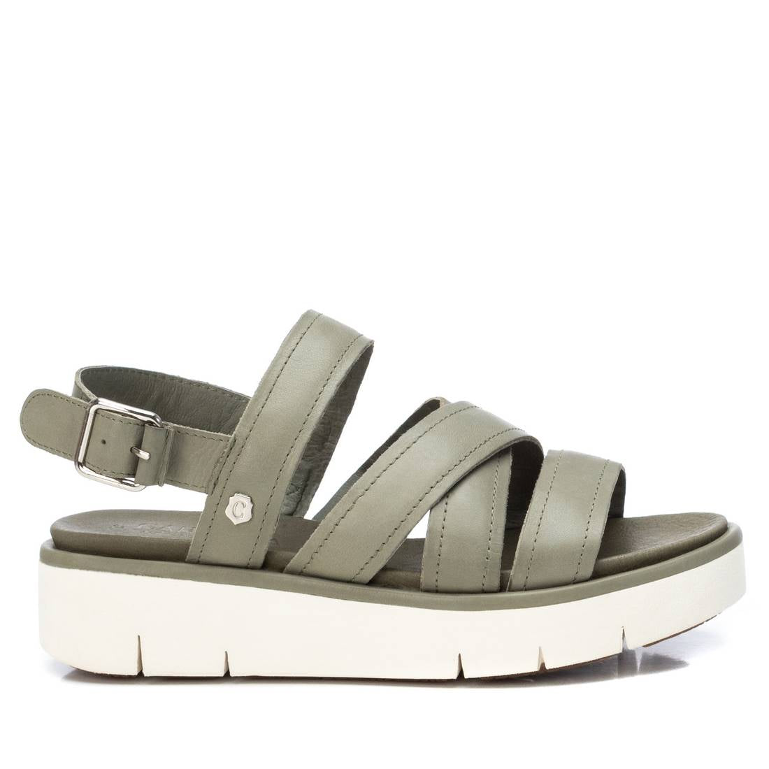 Women's sandal, Carmela brand. Made of high quality leather strips. Back bracelet with metal buckle on the side to adjust to the ankle. Comfortable padded sole with thick 4 cm high non-slip rubber sole. This season you won't have to reject comfort to be fashionable.