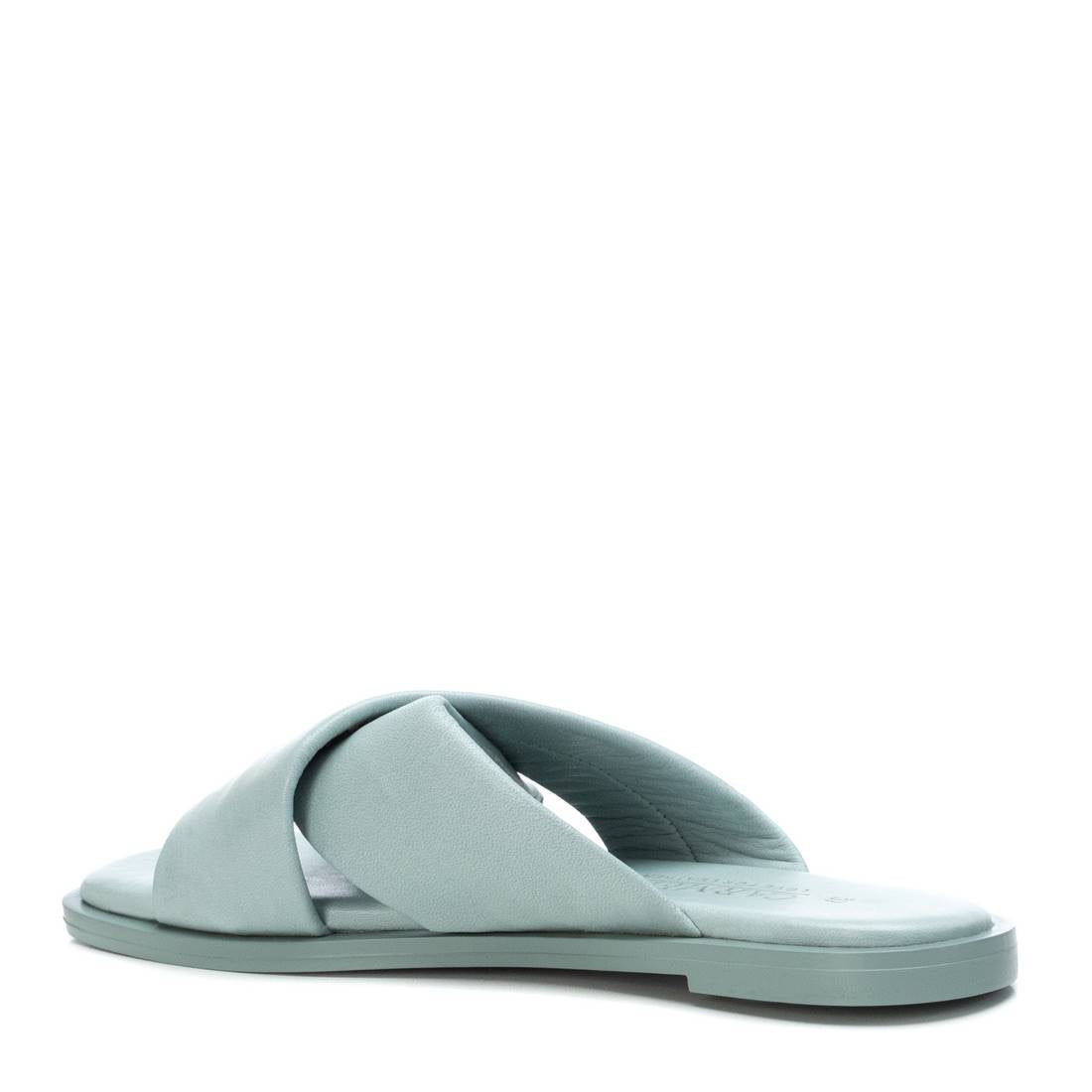 Flat women's slingback sandal, with non-slip rubber sole, from the Carmela brand. Beautiful upper made of two crossed strips of padded leather. Comfortable padded floor.