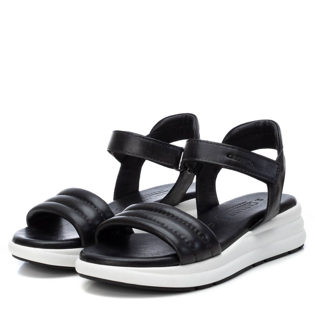 Leather sandal, with a 4 cm platform, Carmela brand. Padded upper with self-adhesive strap that adjusts the ankle. Matching padded insole, providing comfort with every step. With non-slip rubber sole.