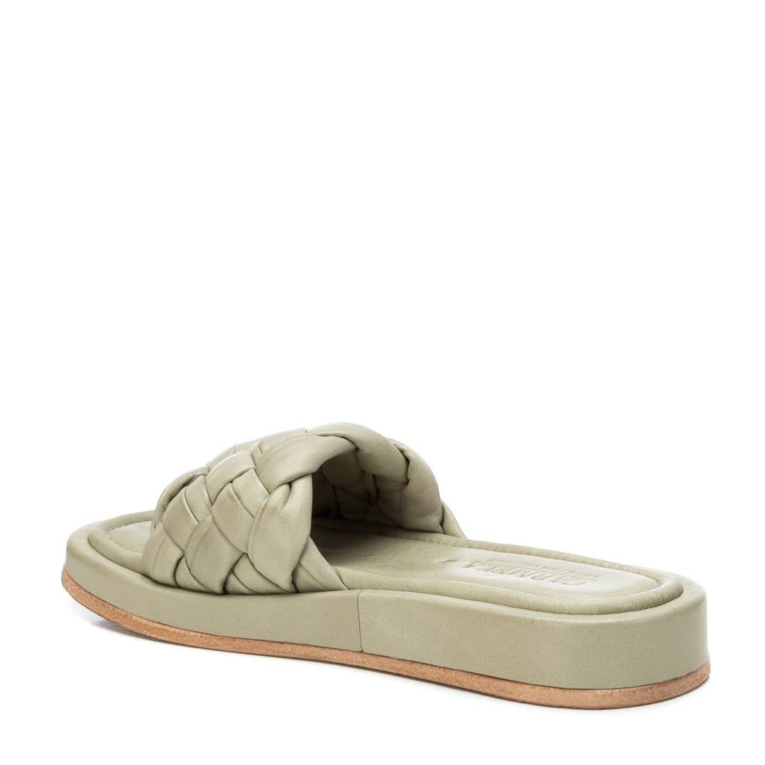 Women's slingback sandal, from the Xti brand. Wide straps made of leather, with matching buckle for a personalized fit. Comfortable padded floor. Contoured platform with braided jute, with a 3 cm floor with non-slip rubber sole.
