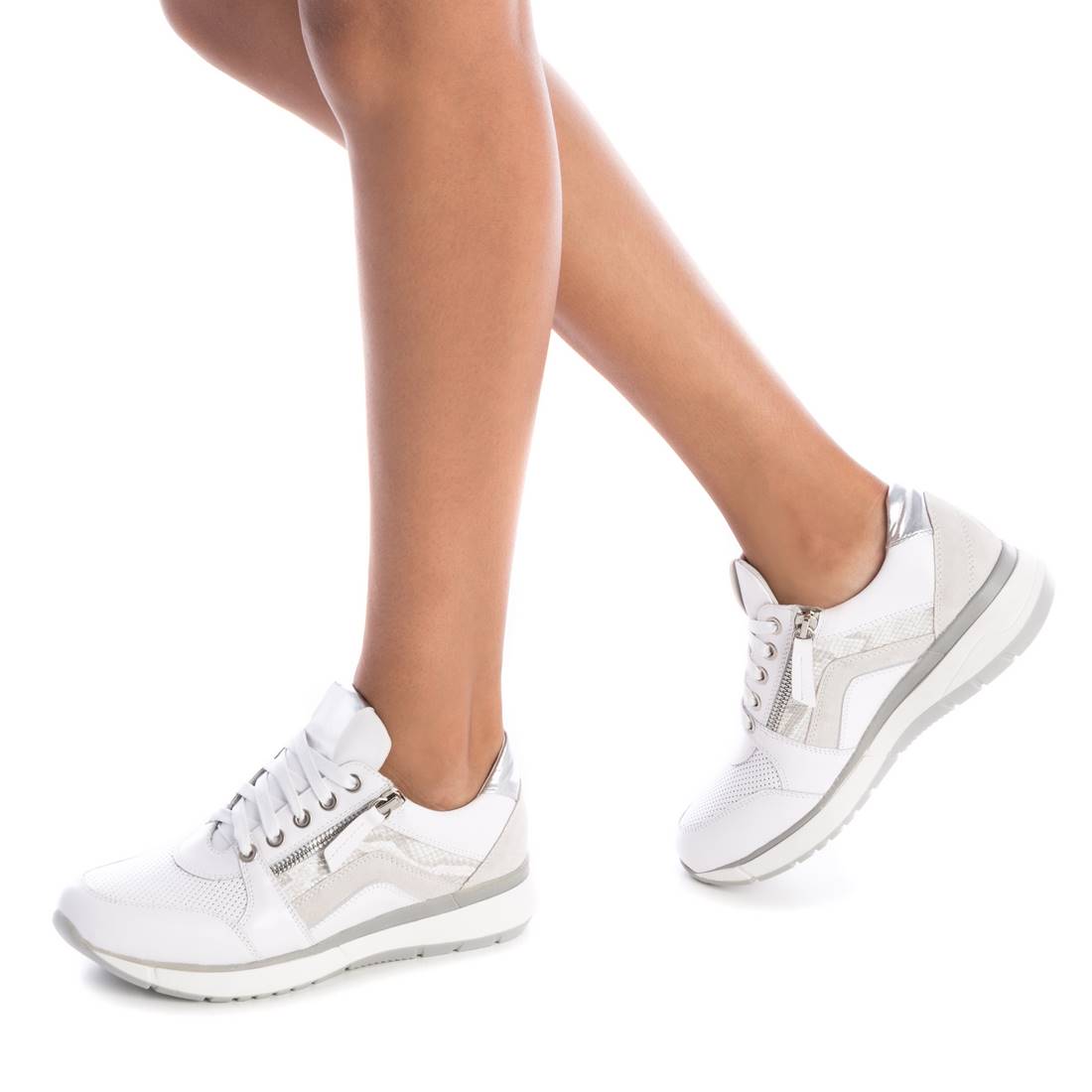 Women's sneaker with a combined rubber sole in different shades and a 4 cm wedge. Made of high quality leather. Matching laces and side zipper for easy putting on.