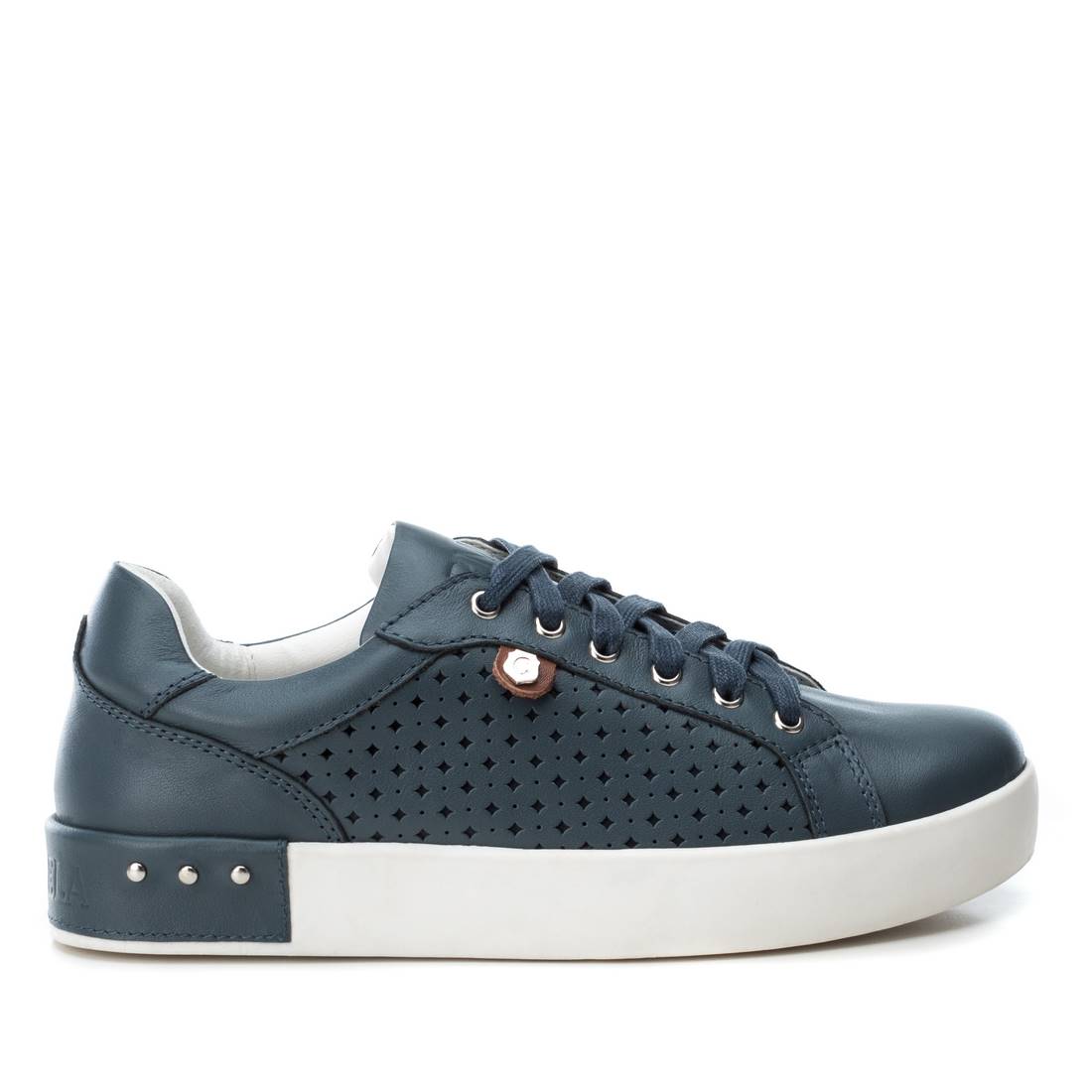 Women's sneaker made of leather from the Carmela brand. 3 cm combined rubber sole and decorative studs on the back. Matching laces and die-cut cuts on the sides.