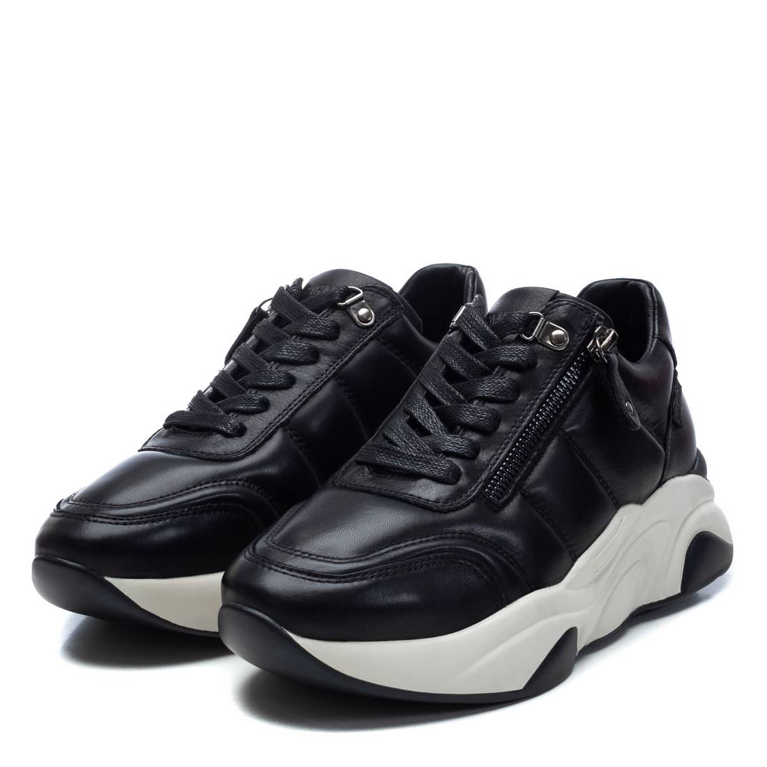 Sports style women's sneaker with a 5 cm high sole from the Carmela brand. Made with an original high quality leather padding. Closure with matching lacing. Two-tone, non-slip rubber sole with volume, very fashionable this season.
