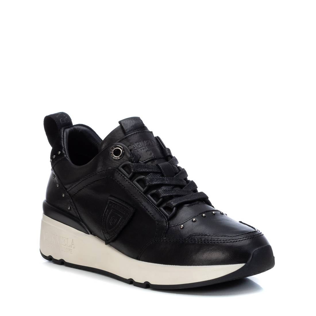 High quality casual style women's sneaker. It is from the Carmela brand, and is made of leather with matching laces. It has small studs for decoration. With non-slip rubber wedge.