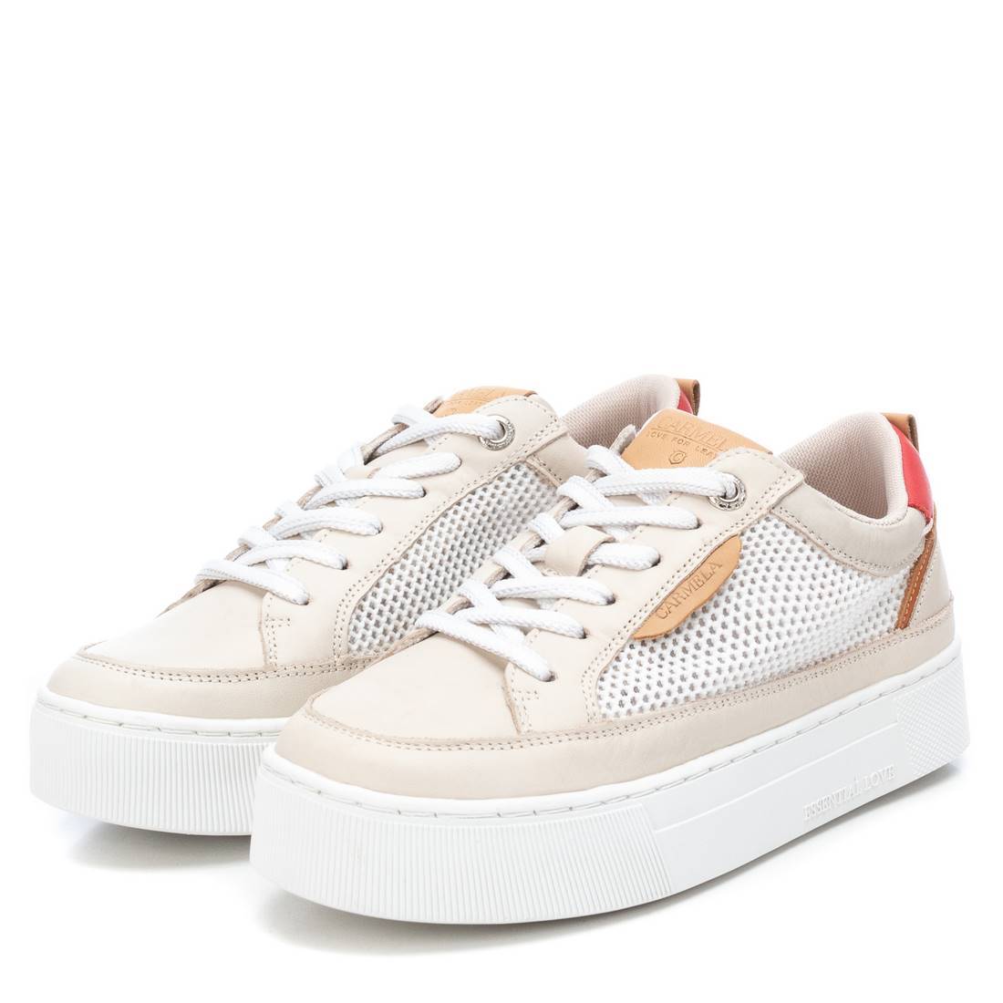 Women's sneaker with a thick 3 cm white platform, from the Carmela brand. Made of leather with side mesh. A comfortable shoe that provides comfort with every step.