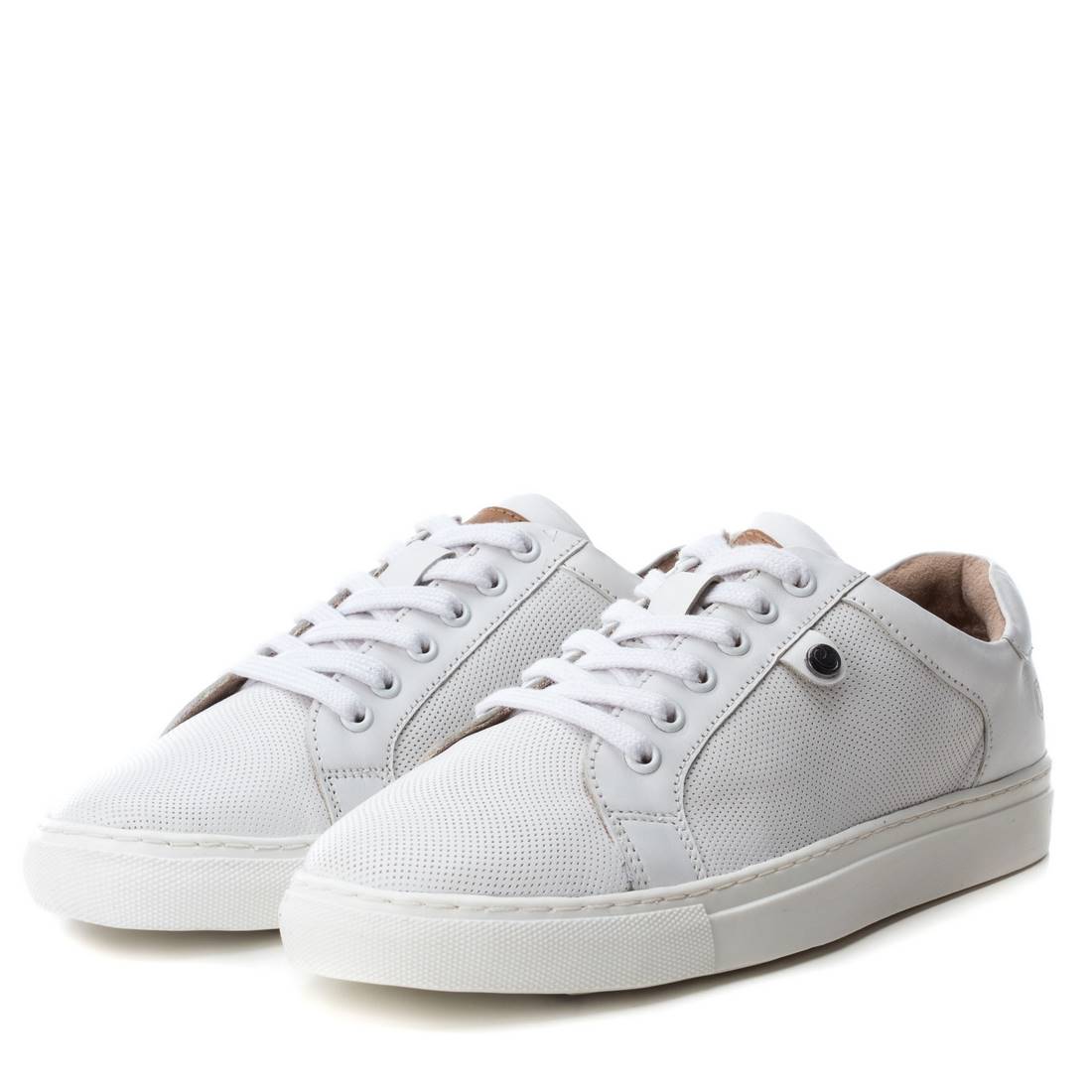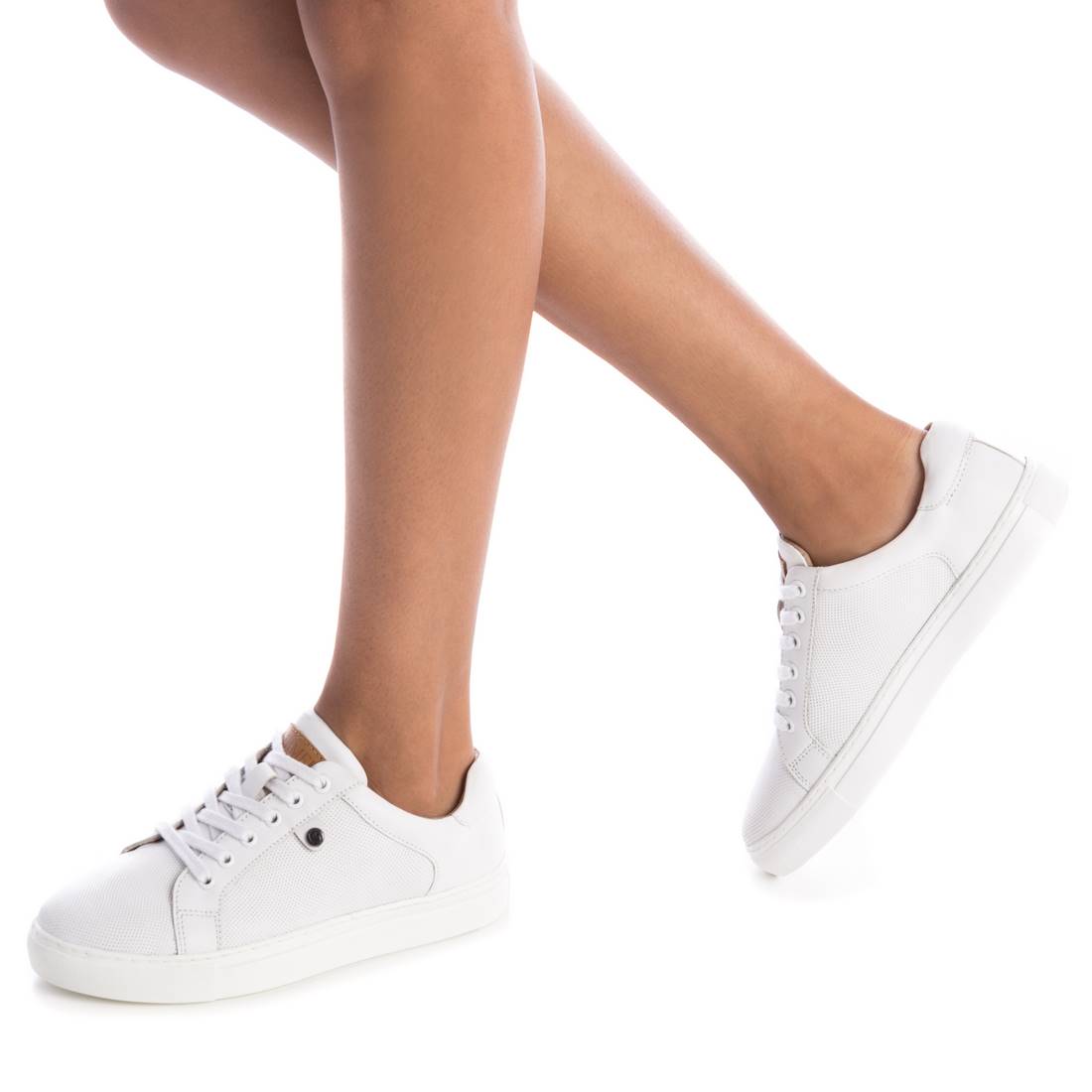 Women's casual style sneaker made of leather, both the cut and the insole. 2 cm white rubber sole. Lace-up closure.