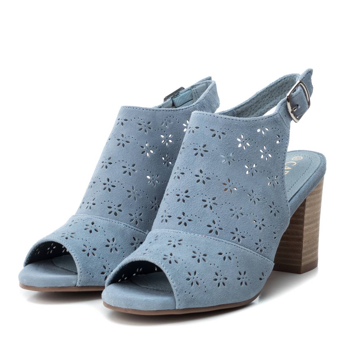 Women's sandal with a 9 cm wide heel made of leather. The cut has flower-shaped die-cuts that make it a very original sandal. Side buckle to facilitate a perfect fit. Both the upper and the sole are made of high quality leather.