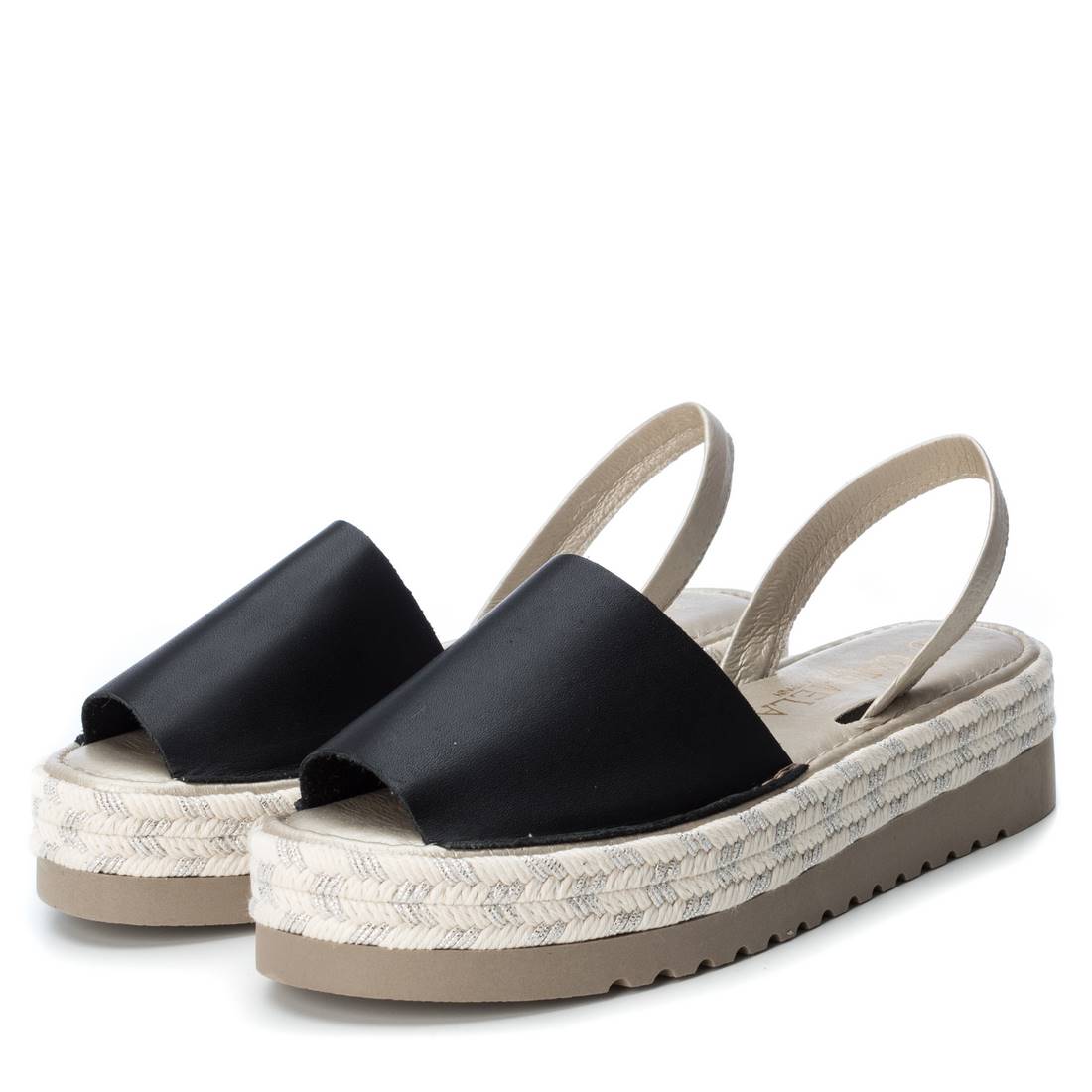 Women's sandal with 4 cm sole. Carmela brand sandal, made of high quality leather, both the cut and the insole. Menorcan-type sandal with a very modern and very comfortable style. Combined rubber and jute sole.