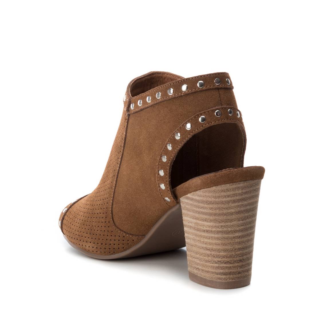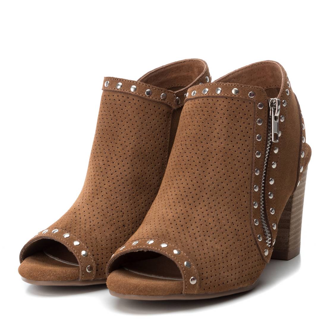 Women's sandal with 8 cm wide heel. High quality leather cut and insole. Side zipper for easy putting on and decorative studs on the edges. The cut on the front has small die-cuts that give it a very original touch. Bare heel.