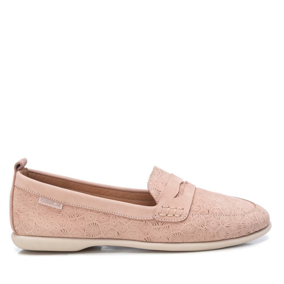 Women's moccasin-type shoe from the Carmela brand. Slip-on shoe with fine toe. Leather insole and non-slip rubber sole. Comfortable and light shoe, perfect to wear for hours.