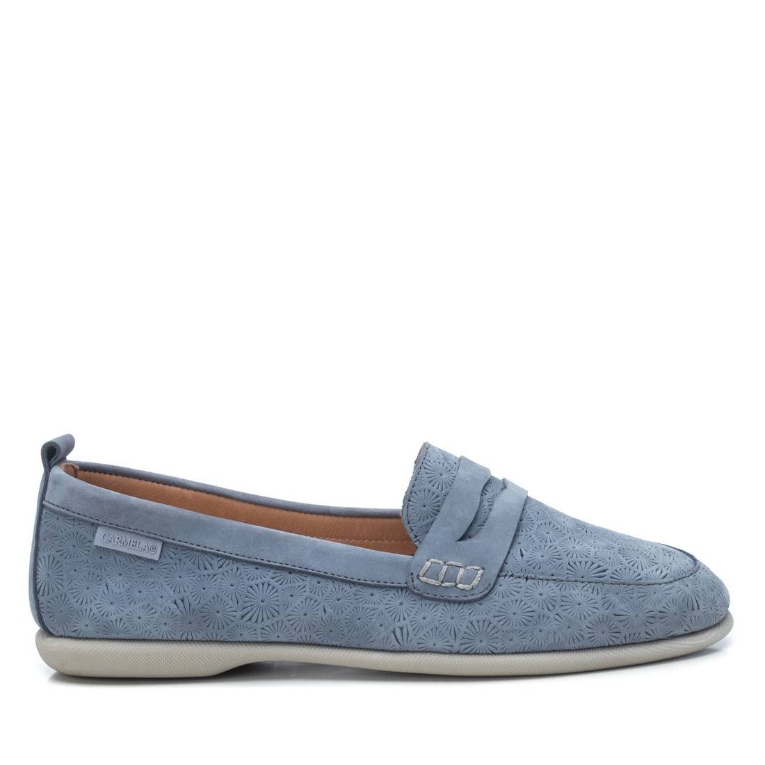 Women's moccasin-type shoe from the Carmela brand. Slip-on shoe with fine toe. Leather insole and non-slip rubber sole. Comfortable and light shoe, perfect to wear for hours.