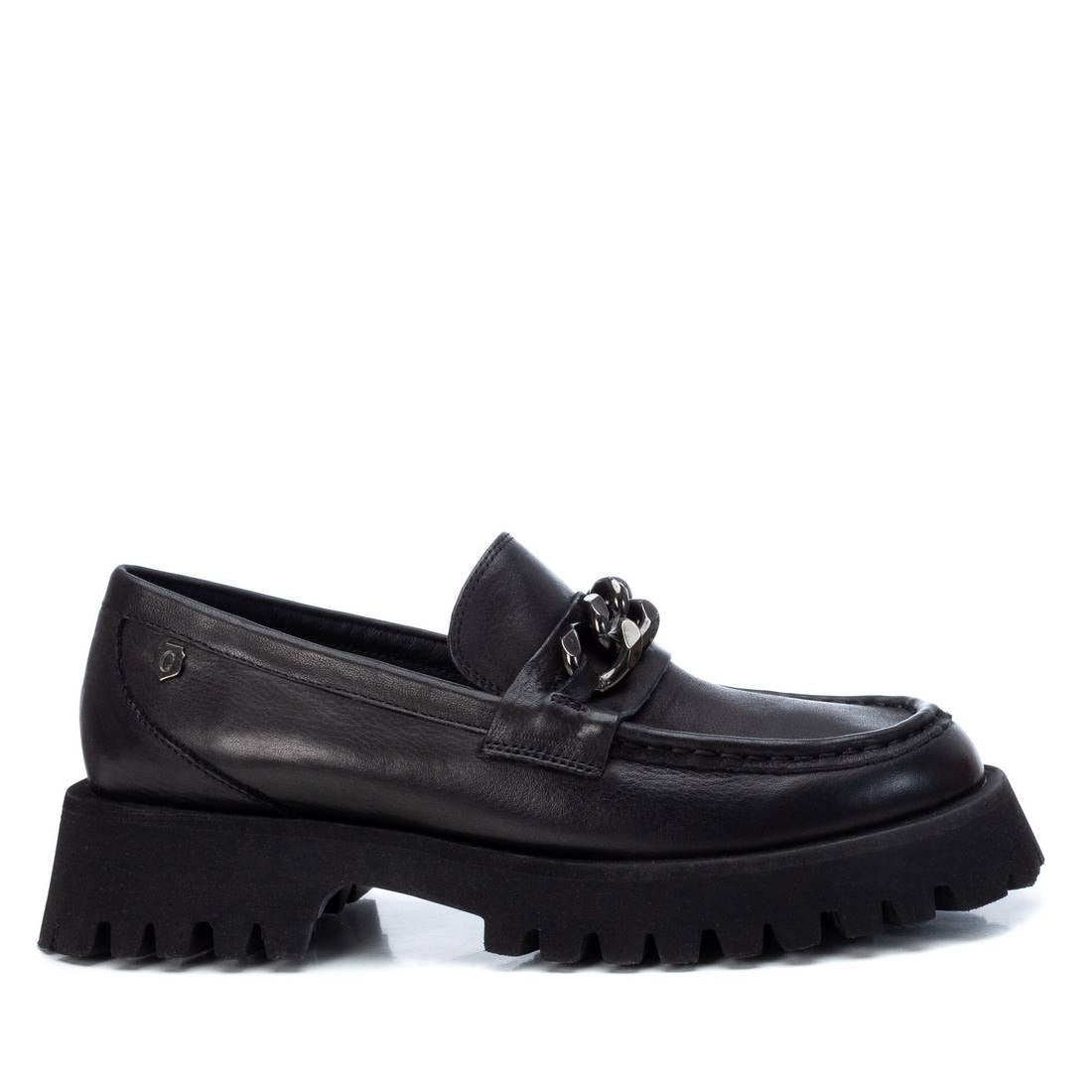 Moccasin style women's shoe, from the Carmela brand. It is made of high quality leather. It has a decorative chain on its front. Non-slip rubber sole.
