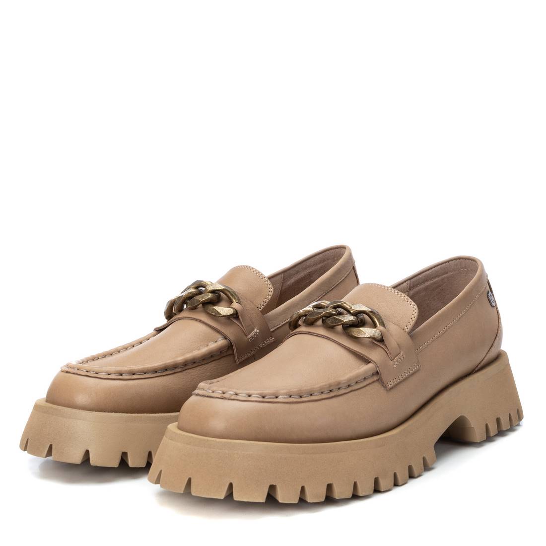 Moccasin style women's shoe, from the Carmela brand. It is made of high quality leather. It has a decorative chain on its front. Non-slip rubber sole.