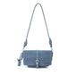 Bolso de mujer, de la marca Carmela. Fabricado en serraje de alta calidad. Cierre de solapa con botón. Cierre interior de cremallera. Tira de hombro tubular removible. También, opción bandolera. 2 bolsillos. Medidas: 17 x 23 x 6 cm.
