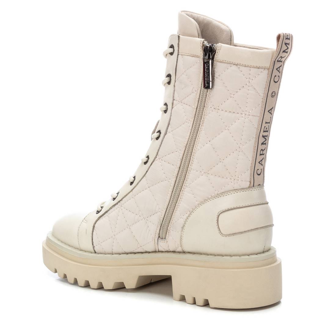 Botín de mujer, de la marca Carmela.Fabricado en nylon acolchado combinado con piel de alta calidad. Cierre de cremallera con cordones regulables para un mejor ajuste. Resistente suela tipo track de goma antideslizante, preparada para dejar huella en todo tipo de terrenos.