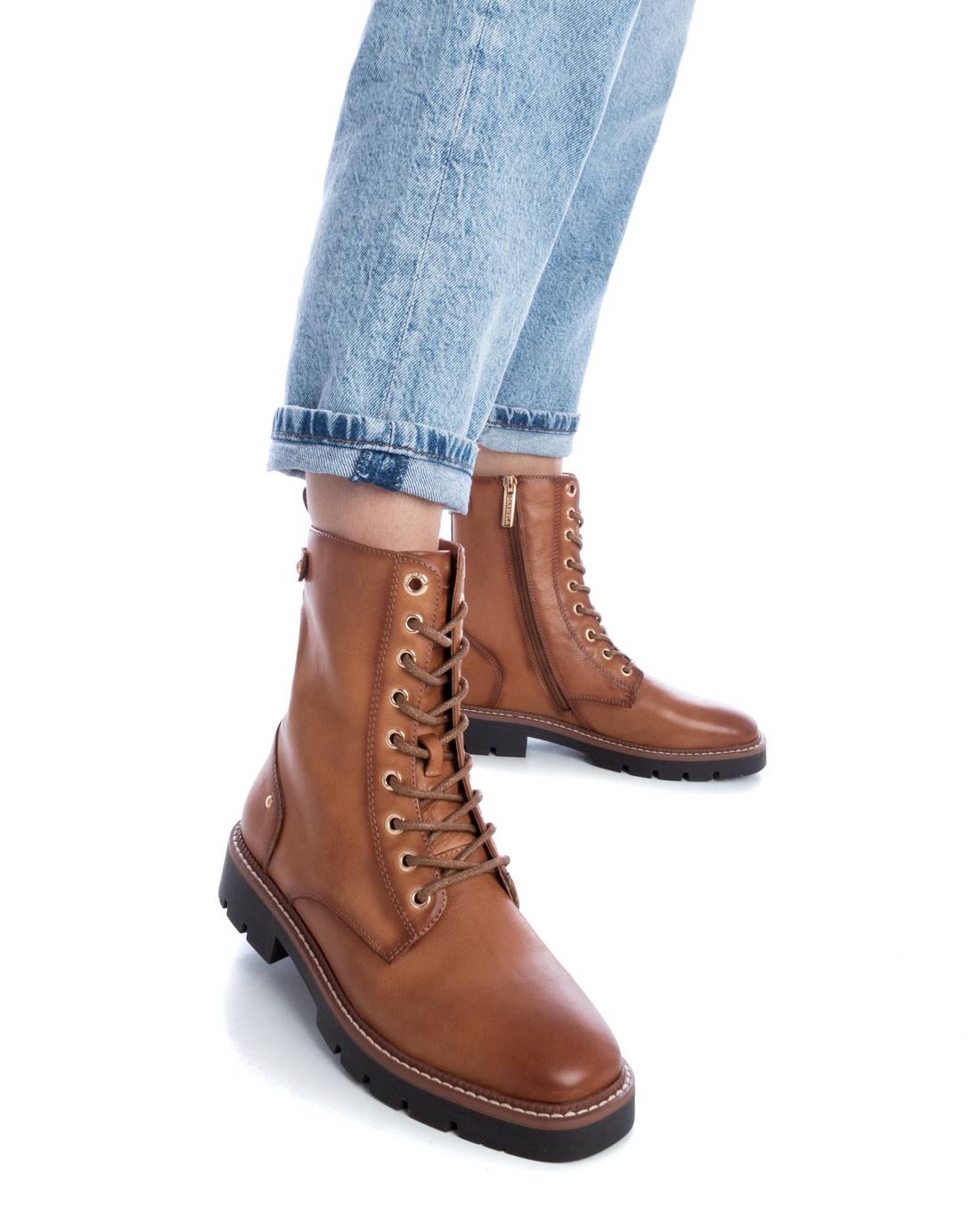 Botín de mujer, de la marca Carmela. Fabricado en piel de alta calidad. Cierre mediante cremallera lateral y cordones para un buen ajuste. Tirador trasero para facilitar la puesta. Suela track de goma antideslizante.