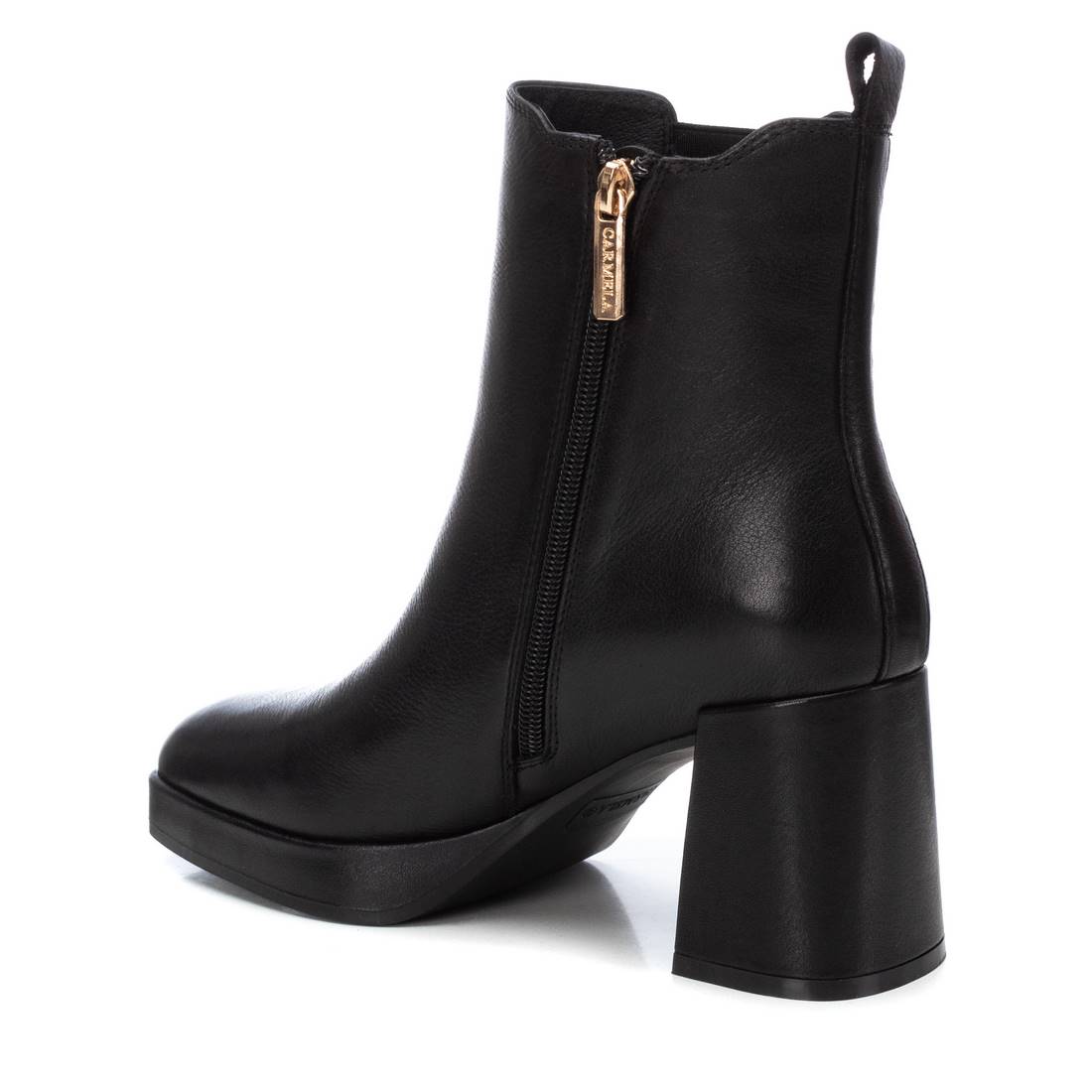 Botín de mujer, de la marca Carmela. Fabricado en piel de alta calidad. Cierre mediante cremallera lateral. Modelo estilo chelsea con elástico lateral y tirador trasero para facilitar la puesta. Tacón ancho de 8 cm con suela de goma antideslizante.