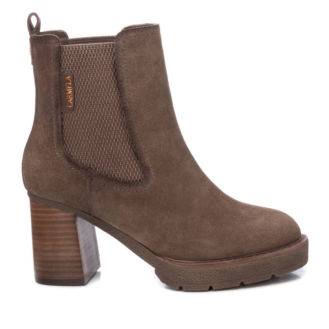 Botín de mujer, de la marca Carmela. Fabricado en serraje de alta calidad. Laterales elásticos para mayor comodidad. Tirador trasero para facilitar su calce.