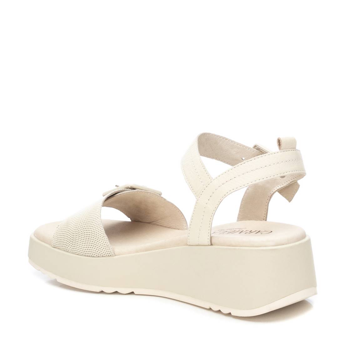 Sandalia de mujer, de la marca Carmela. Fabricada en piel de alta calidad. Pala con hebilla decorativa y pulsera al tobillo con hebilla para un buen ajuste. Cómodo piso al tono del modelo con una pequeña cuña. Suela antideslizante.