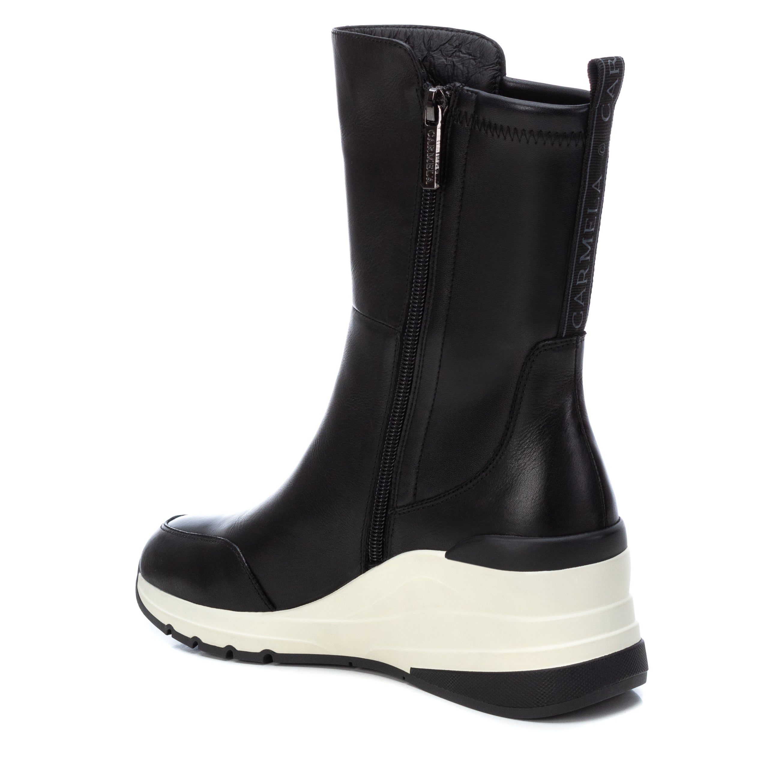 Botín deportivo de mujer, de la marca Carmela. Fabricada en piel de alta calidad. Cierre mediante cremallera interna. Cuña de 6 cm de altura con suela de goma antideslizante. Este modelo es perfecto para ir cómoda sin perder el estilo.