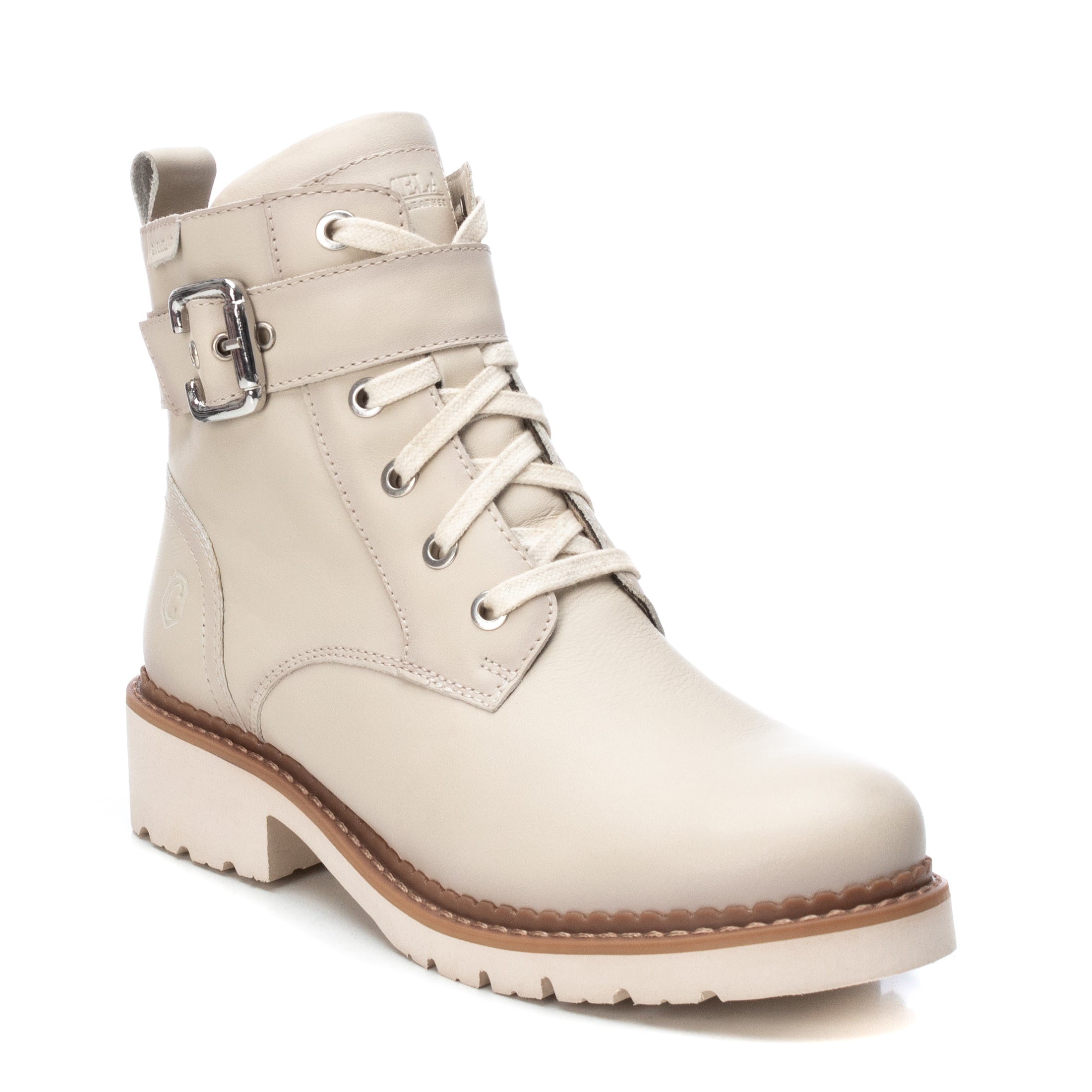 Bota feminina de cano curto, da marca Carmela. Feito de couro de alta qualidade. Fecho de zíper. Puxador traseiro para fácil colocação. Cadarços ajustáveis para um melhor ajuste. Detalhe de alça com fivela metálica. Bota sofisticada que alia elegância e conforto. Sola isolante de borracha antiderrapante.